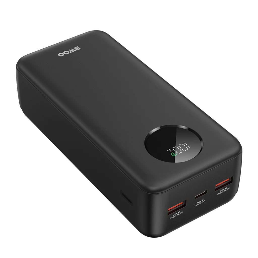 A nagy kapacitása ellenére a power bank kompakt és hordozható, így ideális útitárs.