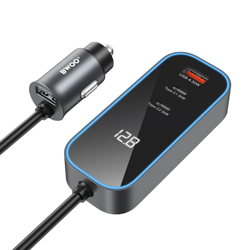 A USB-C Multi-Port 120W autós töltő összesen 120W teljesítményt kínál, lehetővé téve akár négy eszköz egyidejű gyors töltését – hatékony energiát biztosítva minden utas számára az úton. Az 1,5 méteres kábellel a hátsó utasok kényelmesen csatlakoztathatnak akár három eszközt, így ideális megoldás családi kirándulásokhoz vagy közös ingázáshoz. A beépített csúszásgátló klipsz és a kétoldalas snap rögzítés biztosítja a stabil elhelyezést még döcögős utakon is, míg a dinamikus RGB világítás modern stílust kölcsönöz az autó belső terének. A beépített LED feszültség kijelző lehetővé teszi a töltési állapot valós idejű nyomon követését, az előrehaladott biztonsági rendszer pedig automatikusan lekapcsolja az áramot túlmelegedés vagy túlterhelés esetén, védve mind az eszközöket, mind az utasokat.