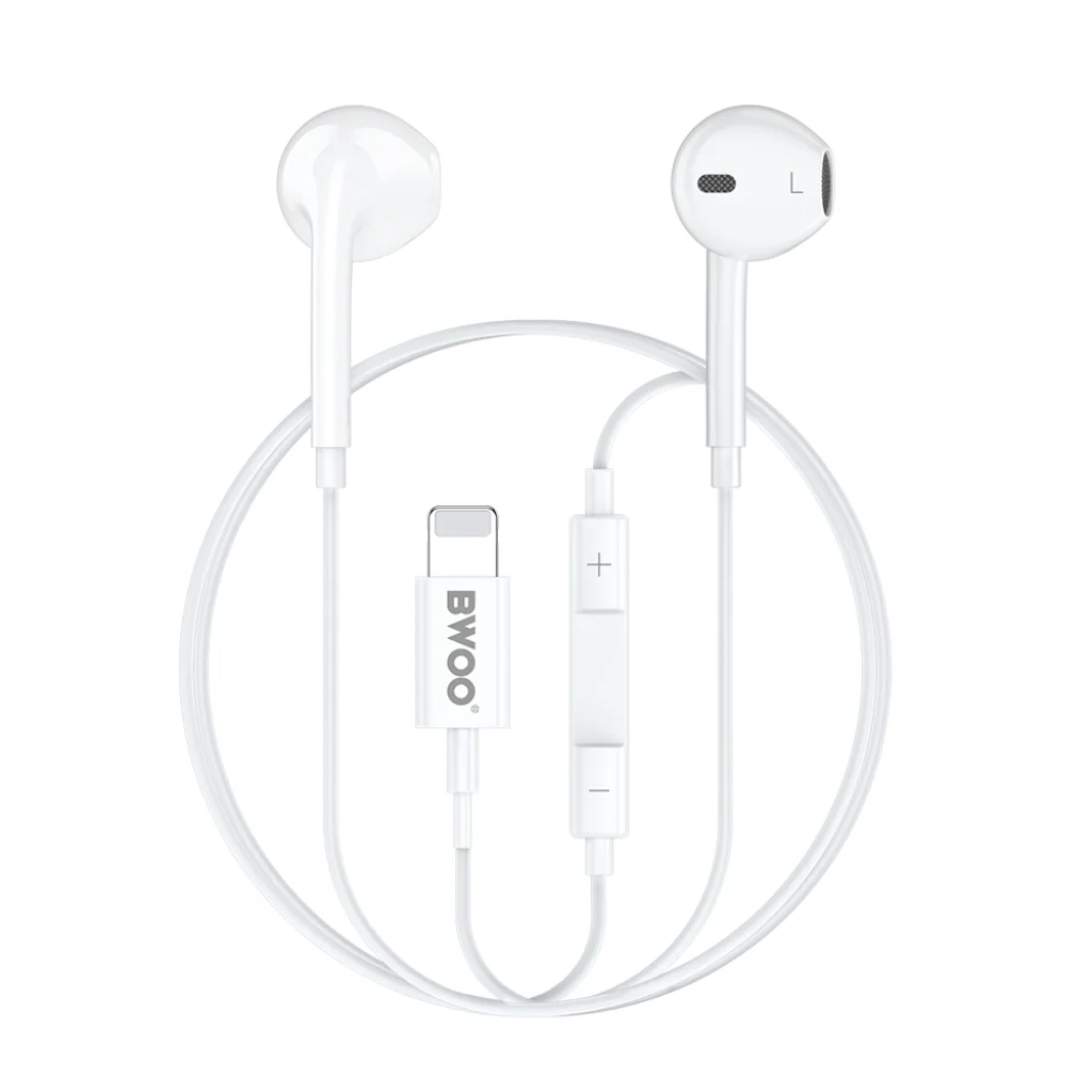BWOO Vezetékes Fülhallgató Lightning Hangerőszabályzóval HF179 fehér