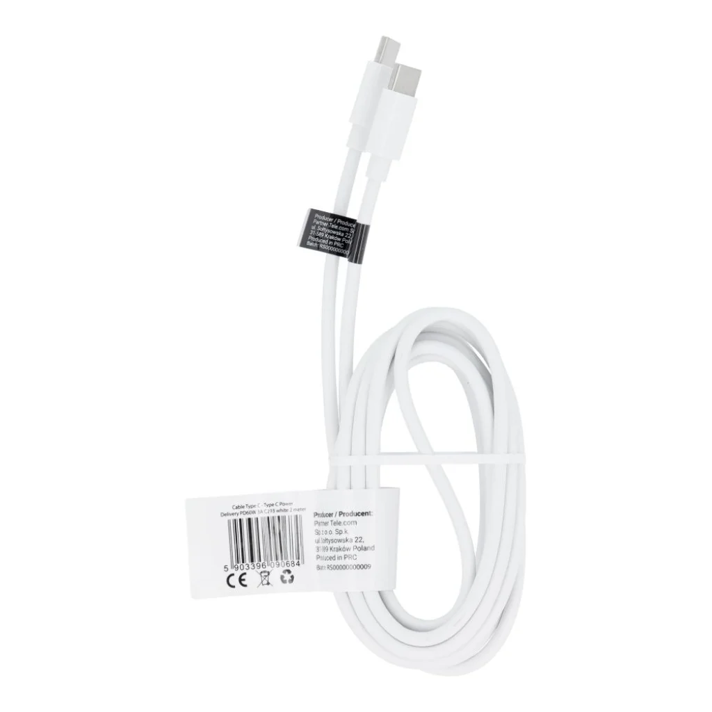 Univerzális kábel USB-C - USB-C csatlakozóval. Támogatja a PD 60W gyorstöltést és adatátvitelt. Gyorstöltési funkció akár 60W-ig - támogatja a Power Delivery, Quick Charge és más protokollokat, amelyek lehetővé teszik az eszközök töltési idejének lerövidítését (gyorstöltési funkcióval rendelkező töltő szükséges) és lehetővé teszi az adatátvitelt. Sokoldalúság - 2 m hosszúságú kábel. A két USB-C csatlakozónak köszönhetően sok eszközhöz illeszkedik, és a TPE anyag biztosítja az erősséget és tartósságot. Specifikáció: Hosszúság: 2 m Csatlakozó: 2x USB-C Teljesítmény: 60W 3A / 20V Kimenet: 5V / 1.5A Anyag: TPE Támogatás: Power Delivery, Quick Charge és más töltési protokollok Kompatibilitás: USB-C csatlakozóval rendelkező eszközök