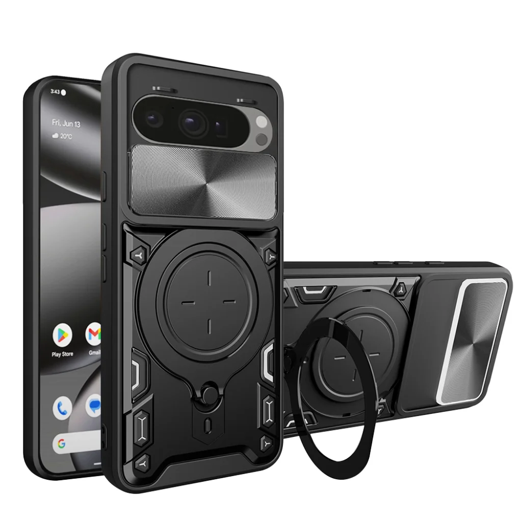 - Fejlett kamera védelem: A tok beépített, csúszó lencsevédővel rendelkezik, amely egy elegáns, CD mintázatú fémhatású felületet rejt. Ez a mozgatható fedél hatékonyan óvja a Google Pixel 10 Pro XL kameráját a karcolásoktól, portól és ütődésektől, miközben diszkréten védi a magánéletét is, amikor a kamerát nem használja.