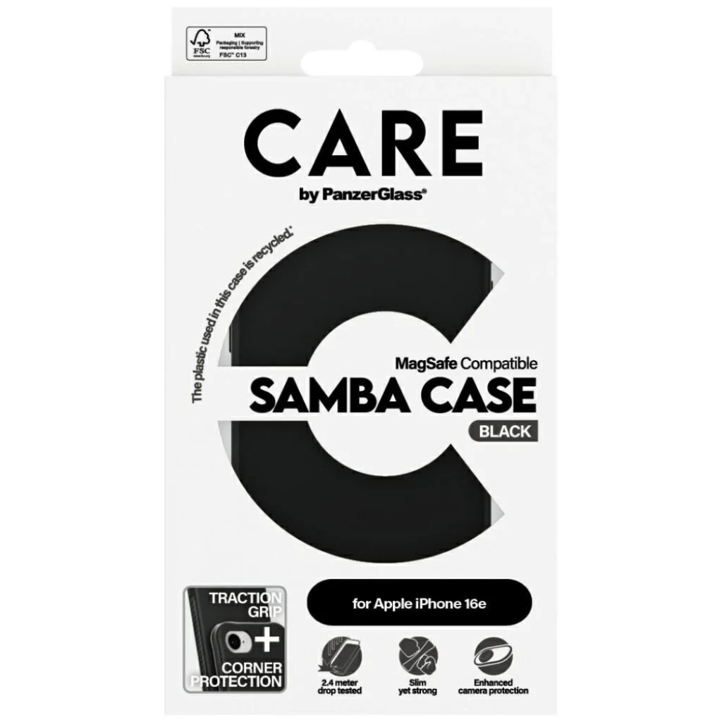 CARE by PanzerGlass Fashion MagSafe tok iPhone 16e-hez Fekete Védd meg elektronikáidat stílusosan a CARE by PanzerGlass® segítségével. A kiváló minőségű tokok természetes kiegészítői a stílusodnak, ötvözve az eleganciát, a modernséget és a megbízható védelmet. Ezekkel nemcsak megvédheted készüléked, de hangsúlyozhatod divatos karaktered és mindig egy lépéssel a legújabb trendek előtt járhatsz. Stílusos védelem a telefonodnak Vigyázz készüléked biztonságára anélkül, hogy feláldoznád annak divatos megjelenését. A CARE by PanzerGlass® sorozat tokja a stílus és a funkcionalitás kombinációja, maximális védelmet nyújtva a mindennapi ütődések és leesések ellen. A megerősített sarkok és a tartós kialakítás révén telefonod hatékonyan védett az esetleges sérülésektől. A kellemes tapintású felületének köszönhetően a tok tökéletesen illeszkedik a kézbe, és a csúszásmentes szerkezet minimalizálja az eszköz kicsúszásának kockázatát. Ez a tökéletes választás azoknak, akik értékelik a biztonságot és az esztétikát is. Ezenkívül a tok kompatibilis a Qi vezeték nélküli töltéssel, ami azt jelenti, hogy nem kell levenni a töltés során. Ez egy kényelmes és modern megoldás, amely még kényelmesebbé teszi a telefon használatát. Ha ezt a tokot választod, nemcsak véded okostelefonod, hanem hangsúlyozod stílusod és gondoskodsz annak élettartamáról. Fenntartható dizájn és ökológia Itt a modern dizájn találkozik a környezettudatossággal. A tok 100%-ban újrahasznosított TPU-ból készült, így barátságos választás a Föld számára. Az újrahasznosított anyagokra való összpontosítással a CARE by PanzerGlass® segít csökkenteni a műanyaghulladékot és elősegíti a fenntarthatóbb megközelítést a technológiához. Ez nagyszerű választás azoknak, akik modern megoldásokat szeretnének ötvözni a környezeti felelősséggel. Az ökológiai szemlélet nem jelent kompromisszumot a minőség terén. A tok rendkívül tartós, karcálló és hosszú távú védelmet nyújt a telefonnak. Rugalmas kialakítása könnyen fel- és levehetővé teszi, miközben tökéletesen alkalmazkodik az eszközhöz, biztosítva a teljes hozzáférést a gombokhoz és csatlakozókhoz. Ha ezt a tokot választod, nemcsak a telefonod védelmébe fektetsz, hanem támogatod a tudatos fogyasztás eszméjét és gondoskodsz bolygónkról. Technikai adatok Márka: PanzerGlass Típus: Tok Szín: Fekete Kompatibilitás: iPhone 16e