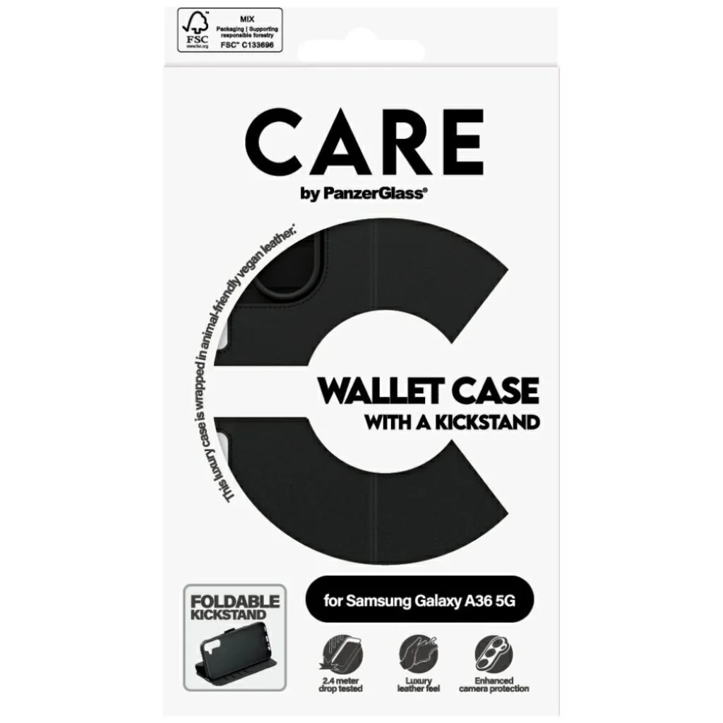 A PanzerGlass Feature Wallet tok stílust és funkcionalitást kínál egyben. Ez a tok kiváló minőségű vegán bőrből készült, amely luxus megjelenést és modern karaktert kölcsönöz neki. A karcsú, könnyű kialakítás nem vastagítja a telefont, és a fekete szín bármilyen stílushoz illik - a mindennapostól az üzletig. A mindennapi kényelmet szolgálja a mágneses záródású pénztárcafunkció és a praktikus kártyatartó zsebek, amelyek megszüntetik a külön pénztárca szükségességét. A beépített állvány kényelmesen lehetővé teszi a filmek nézését, a videohívások lebonyolítását vagy a képek böngészését anélkül, hogy a telefont tartani kellene. Ez a megoldás ideális azok számára, akik értékelik a kényelmet és a sokoldalúságot. A CARE by PanzerGlass megbízható védelmet nyújt a telefonnak - az erősített konstrukciótól kezdve a továbbfejlesztett kameravédelemig, amely megóvja az objektívet a mindennapos használat során. E tok választásával nemcsak okostelefonod biztonságára, hanem a környezetbarát anyagok alkalmazása révén a felelős környezetvédelmi szemléletre is odafigyelsz. Technikai adatok: Márka: PanzerGlass, Cél: Telefon, Szín: Fekete, Anyag: Vegán bőr, Modell: Samsung Galaxy A36 5G, Mi van a csomagban? Tok.