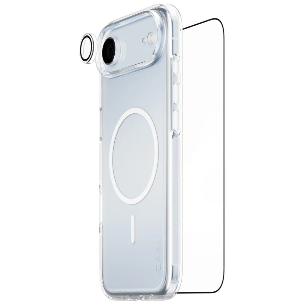 A CARE by PanzerGlass Flagship Explorer 3 az 1-ben Védelmi Készlet Átfogó védelem elegáns kivitelben. A CARE by PanzerGlass® 3 az 1-ben Flagship Explorer az iPhone 17 sorozathoz tökéletes megoldás azok számára, akik meg akarják védeni telefonjukat anélkül, hogy feláldoznák a stílust. Az Ultra-Wide Fit üveg kijelzővédő, amely 60%-ban újrahasznosított anyagokból készült, védi az egész képernyőt a karcolások és ütések ellen, miközben megőrzi a tökéletes tisztaságot és 100% érintési érzékenységet. Az EasyAligner applikátor gyors és problémamentes telepítést tesz lehetővé, még akkor is, ha először használod. Teljes kamera védelem és tartós tok A Transparent Hoops® lencsevédő hatékonyan védi a kamerát a karcolásoktól és károsodásoktól anélkül, hogy befolyásolná az élességet vagy a képminőséget. Intelligens kialakításának és könnyű eltávolításának köszönhetően nyugodtan élvezheted a tudatot, hogy a kamerád biztonságban van. Az Urban Explorer tok MagSafe-kompatibilis, 100% újrahasznosított műanyagból készült és akár 4,8 méteres magasságról is tesztelték a leejtésre. A vékony, átlátszó dizájn kiemeli a telefon természetes szépségét, miközben maximális védelmet nyújt és teljes vezeték nélküli töltési kompatibilitást biztosít. Tudatos választás számodra és a bolygónk számára A CARE by PanzerGlass® termékek a legmagasabb szintű biztonságot ötvözik a környezeti felelősséggel. Az újrahasznosított anyagok tanúsítása, az FSC™ papír csomagolás és a Global Recycled Standard (GRS) megfelelés igazolják a folyamat átláthatóságát és az elkötelezettségünket a jobb jövő iránt. Ezenkívül a tok egyéves anti-sárgulás garanciával van ellátva, biztosítva, hogy telefonod friss és elegáns megjelenése évekig megmaradjon. Ez a készlet nemcsak védi készülékedet, hanem támogatja a technológia fenntarthatóbb megközelítését is. Műszaki adatok Márka: PanzerGlass Modell: Apple iPhone Air Mi van a dobozban? CARE by PanzerGlass Flagship Explorer 3 az 1-ben Védelmi Készlet.