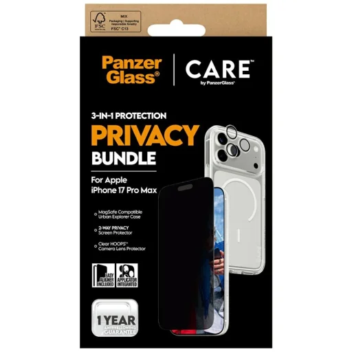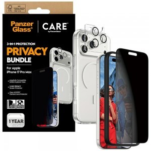 CARE by PanzerGlass Flagship Privacy 3 az 1-ben tok + üvegfólia + lencsevédő iPhone 17 Pro Max-hoz
