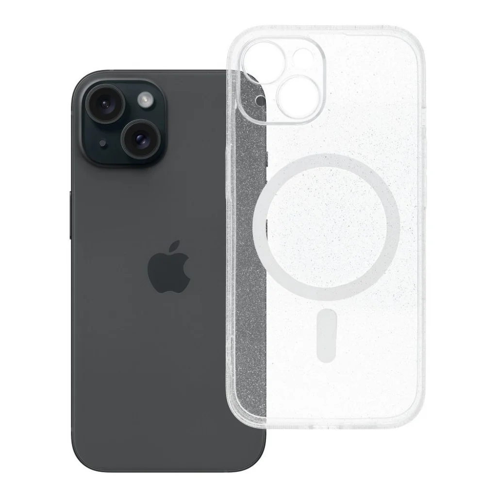 CLEAR MAG COVER tok kameravédelemmel kompatibilis MagSafe technológiával iPhone 15-höz átlátszó csillogó
