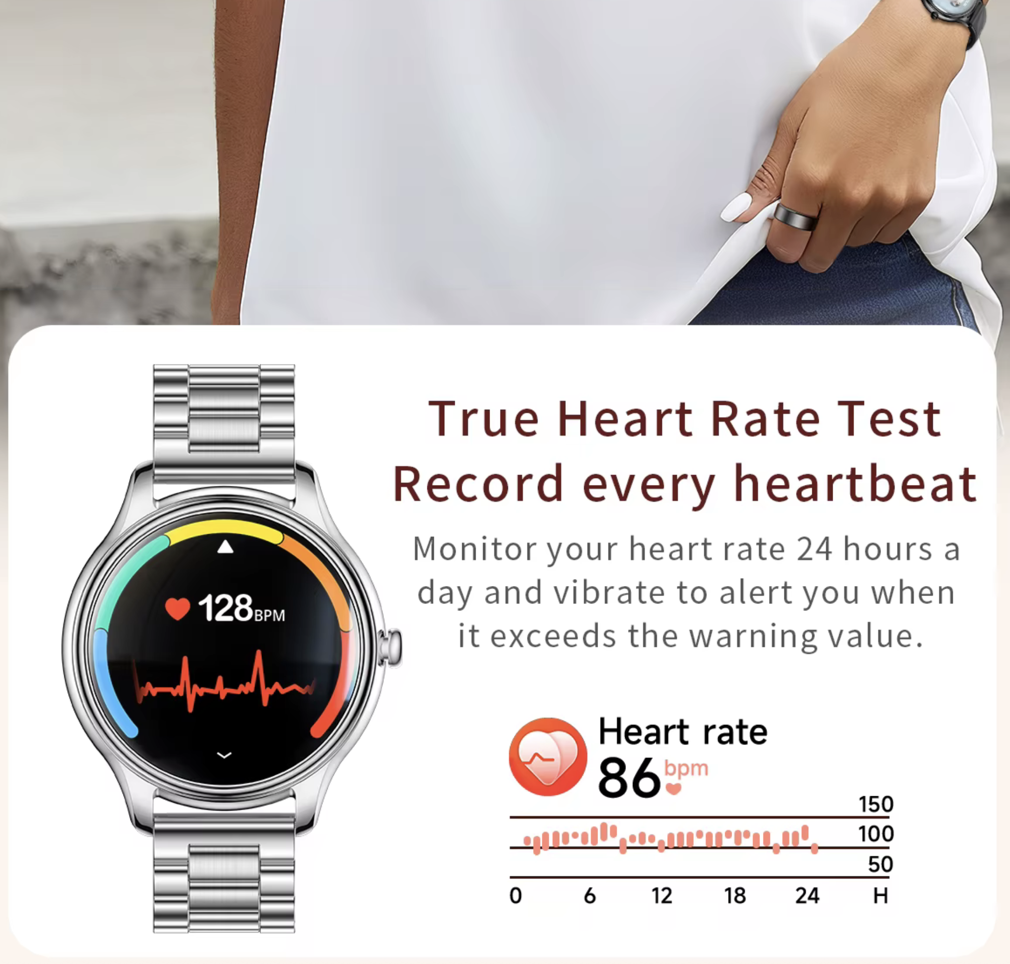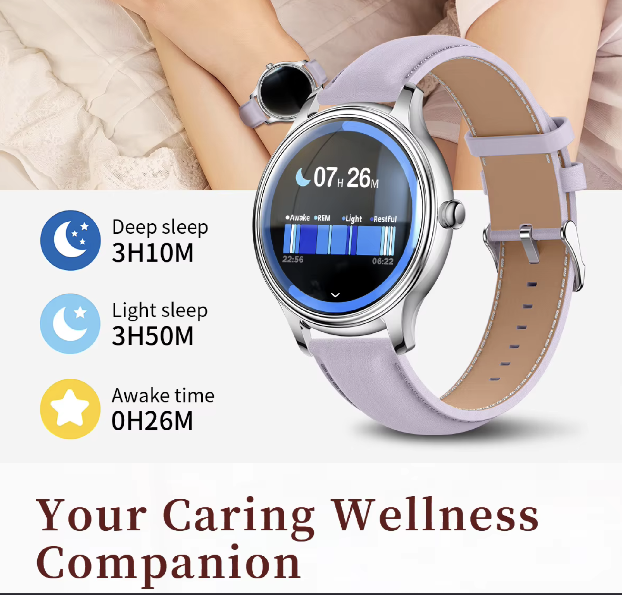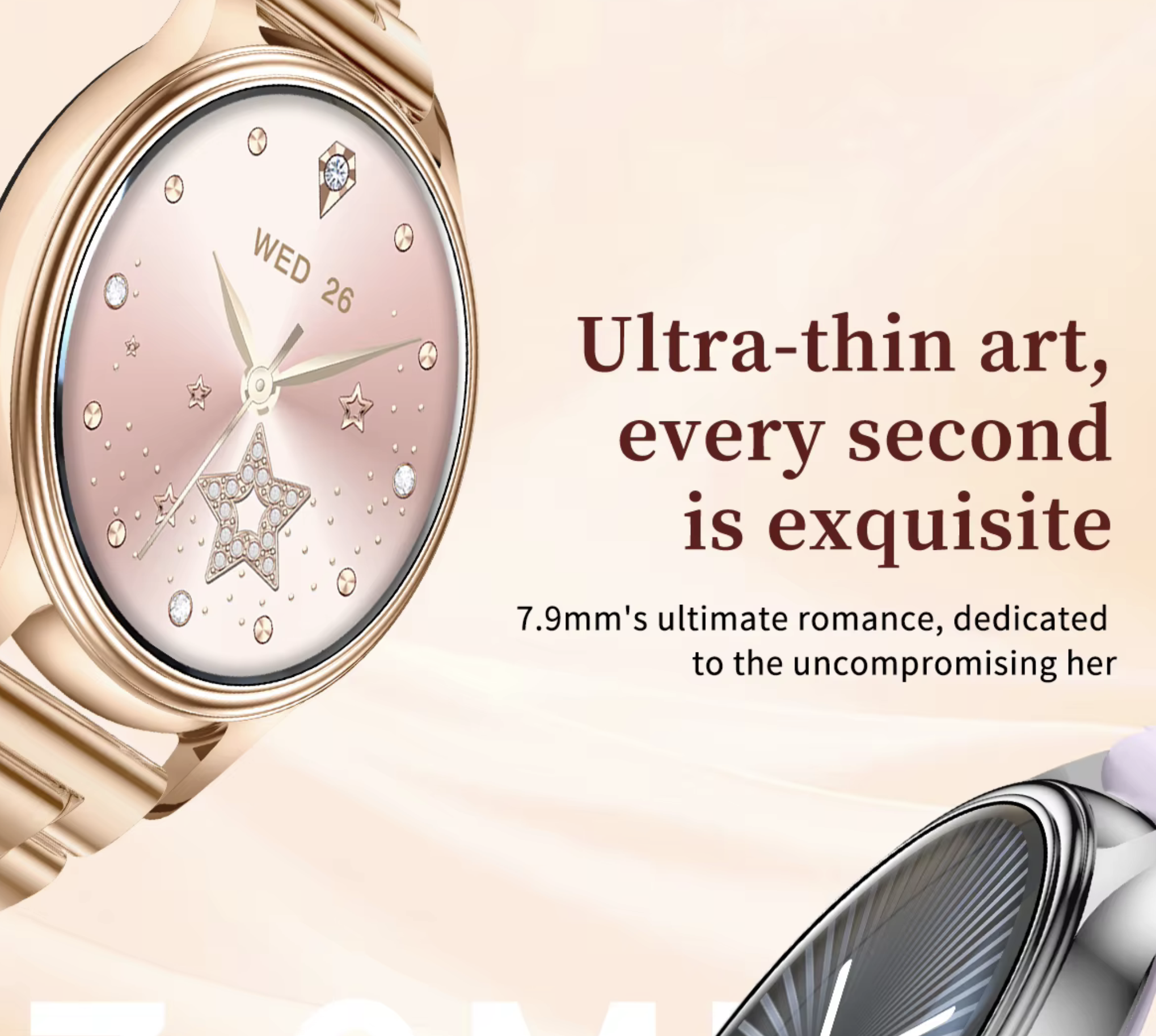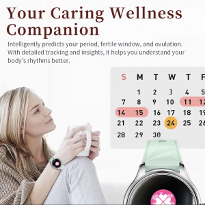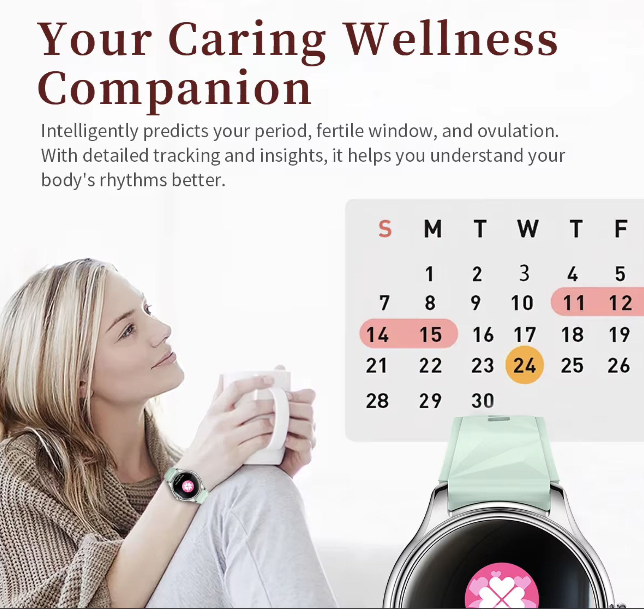 - Női egészségkövetés: Egy gondoskodó társ a nők számára. Az óra intelligensen előrejelzi a menstruációs ciklust, a termékeny időszakot és az ovulációt, részletes nyomon követéssel és elemzésekkel segítve testének ritmusának jobb megértését.