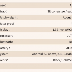 - Lenyűgöző AMOLED kijelző: Az 1.32 hüvelykes AMOLED kijelző élénk színeket és éles képet biztosít, így az információk mindig jól olvashatóak.
