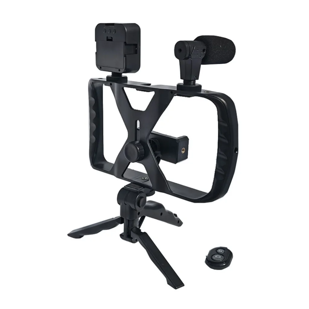 Állvánnyal, telefontartóval, mikrofonnal, LED lámpával és Bluetooth távirányítóval ellátott készlet. Tökéletes vloggoláshoz, videohívásokhoz, interjúkhoz, streamekhez, videók és podcastok felvételéhez vagy fotózáshoz. Az állítható asztali állvány telefontartóval lehetővé teszi a kép stabilizálását mozgás közben, és statikus felvételek készítését is. Zajszűrős mikrofon a tiszta, éles és irányított hangért. A 3 fényerőszinttel rendelkező LED lámpa lehetővé teszi a rögzített jelenet megvilágítását. A Bluetooth távirányító lehetővé teszi a videó felvételének indítását vagy leállítását, valamint a fényképek készítését távolról. A készlet könnyű használatra és gyors beállításra tervezték. Tökéletes vloggereknek, podcastokhoz, élő közvetítésekhez, YouTube-ra és sok másra. A készlet tartalma:
