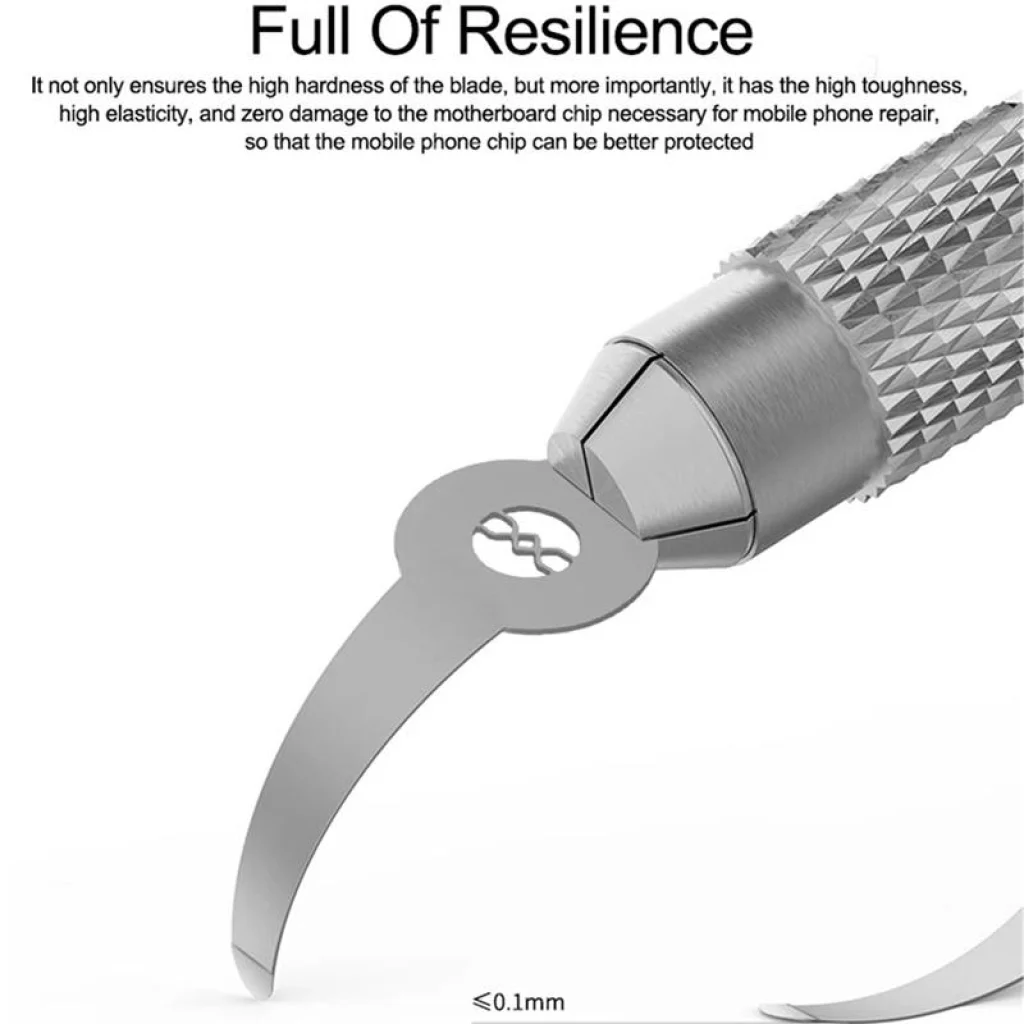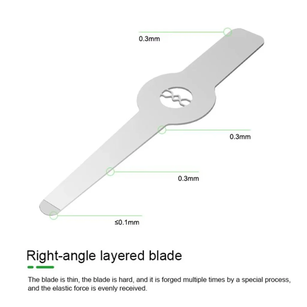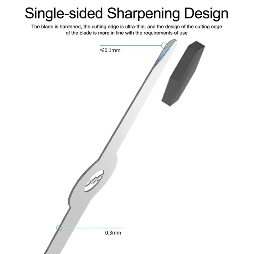 - Precíz és ultravékony kialakítás: A megerősített pengetest rendkívül vékony éllel rendelkezik (hegy vastagsága ≤0.1mm, általános penge vastagsága 0.3mm), amely kifejezetten a CPU és más rétegelt alkatrészek precíz leválasztására van optimalizálva.