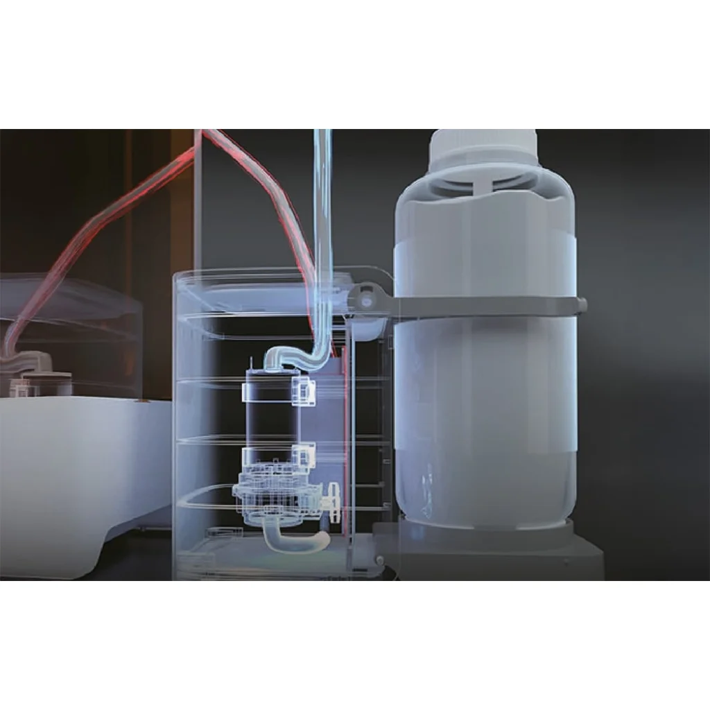 A Halot X1 Combo emellett egy intelligens automatikus adagolóegységet (AFU) is tartalmaz, amely automatizálja a gyantakezelést. Automatikus adagolást és leeresztést biztosít az anyagnak, felismeri annak típusát, felmelegíti azt az optimális hőmérsékletre, és valós idejű előnézetet nyújt a tartályban lévő mennyiségről. Miután egy RFID-címkével ellátott gyantás palackot helyezett a modulba, a nyomtató maga olvassa be annak paramétereit, és letölti a megfelelő profilt a felhőből. Ez kiküszöböli a kézi konfigurálást, és segít elkerülni a hibákat.