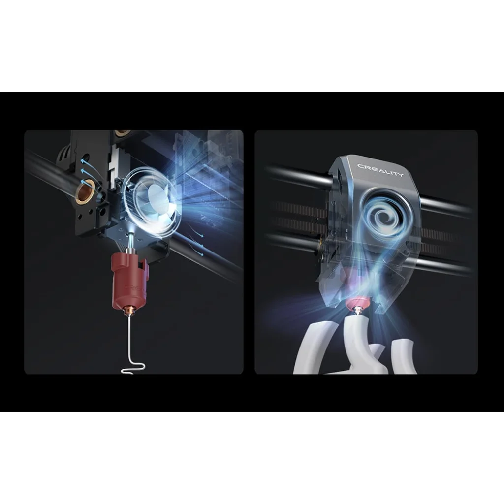 The K1C's all-metal extruder ensures reliability and durability. Its spring and ball-bearing reinforced design creates a strong grip that doesn't loosen, ensuring precise and even filament flow. This is crucial for maintaining print consistency and quality, especially for large tasks.