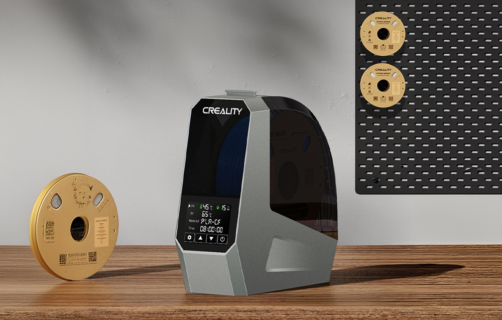 A Creality Space Pi Filament Szárító egy fejlett filament szárító, amely jelentősen javítja a 3D nyomtatások minőségét az anyag nedvességével kapcsolatos problémák, például a fúvóka eltömődése, a gyenge rétegtapadás vagy az illesztési hibák kiküszöbölésével. A szárítóval a filamentek alaposan megszáradnak a nyomtatási folyamat előtt, biztosítva a jobb nyomtatási minőséget és a nagyobb megbízhatóságot. A készülék számos olyan funkcióval van felszerelve, amelyek megkönnyítik a teljes szárítási folyamat irányítását.