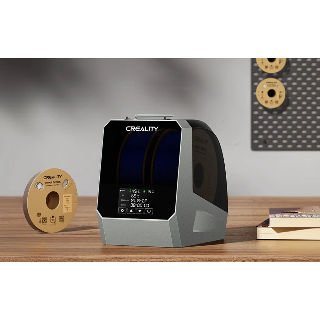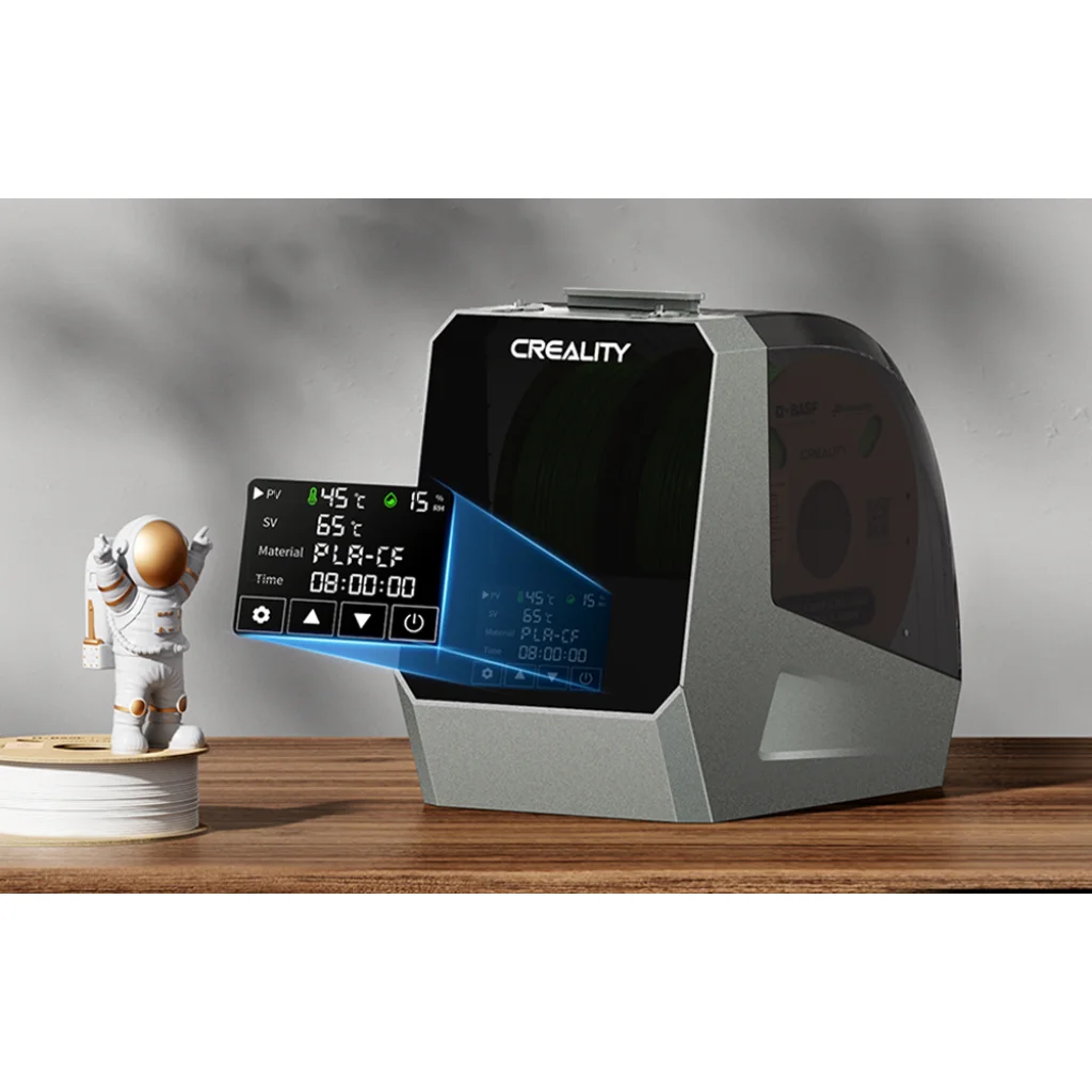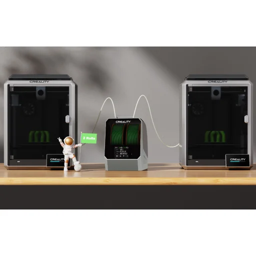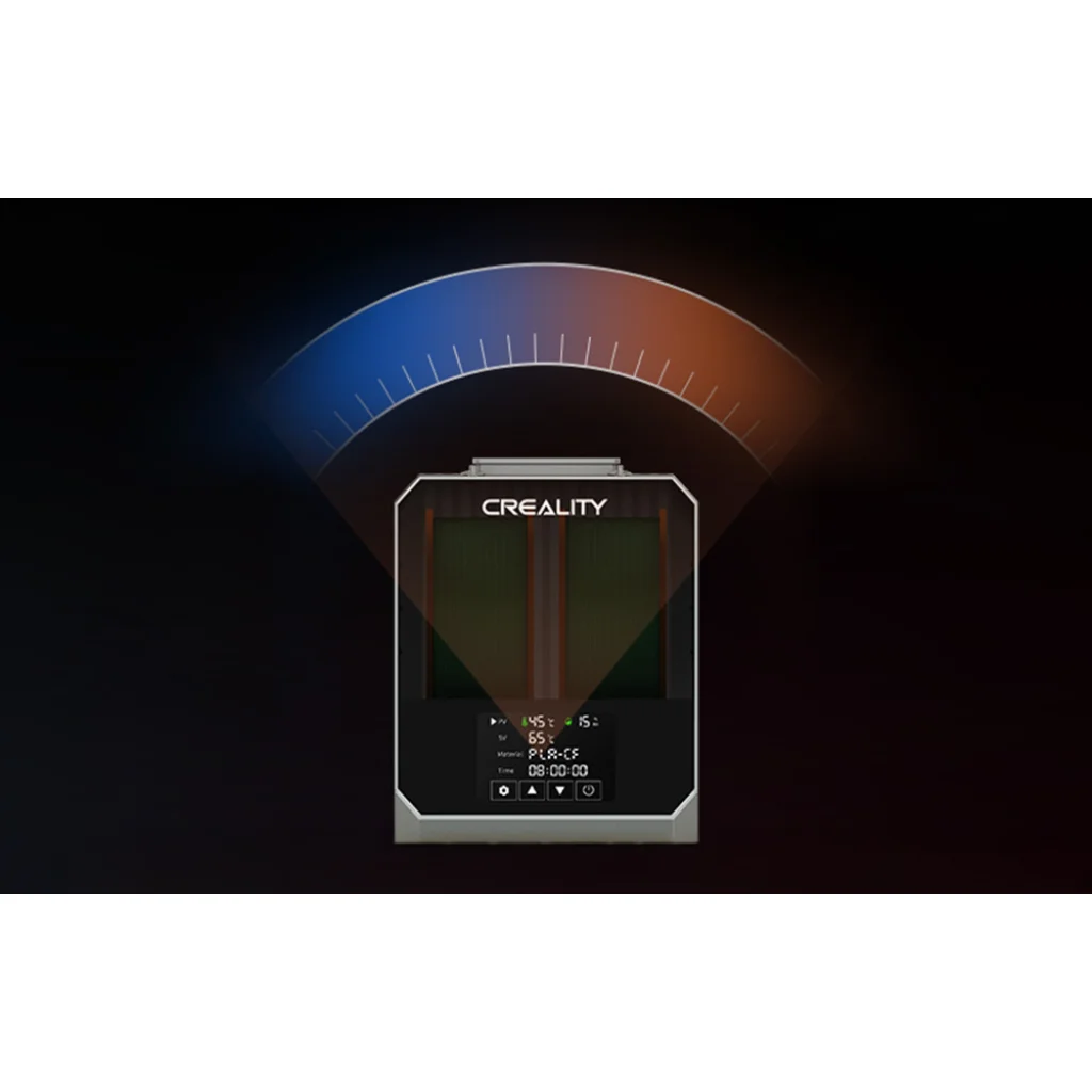 A Creality Space Pi Filament Dryer Plus egy fejlett szál száritó, amelyet a szárítási kapacitás megduplázására terveztek. Mivel ez a készülék egyszerre két tekercs filament befogadására képes, gyors és hatékony szárítást biztosít, ami jobb minőségű 3D nyomatokat eredményez. A szárító precíz hőmérséklet-szabályozással és 360°-os PTC technológiával rendelkezik, amely garantálja az egyenletes felmelegedést és a nedvesség hatékony eltávolítását a filamentekből, megelőzve az olyan problémákat, mint a fúvóka eltömődése, a rossz rétegtapadás vagy a nyomtatás során fellépő elhajlás.