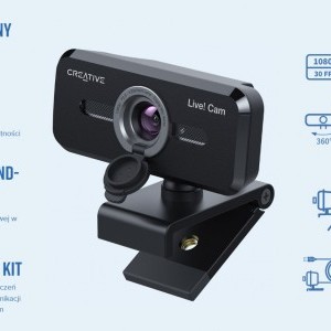 | Image Processing | Sensor technology: CMOS Full HD sensor (1920 × 1080) 2 MP Video resolution: MJPG - 1080p 30 fps / 720p 30 fps; YUY2 - 1080p 5 fps, 720p 10 fps Output format: YUY2 / MJPG Frame rate: up to 30 fps at 1080p Image capture resolution: 1920 × 1080 / 1280 × 720 Image saving format: BMP/JPG Field of view: 77° diagonal Sound pickup range: 500 mm / 50 cm to infinity. Optimal range: 600 mm / 60 cm Flicker reduction: 50 Hz or 60 Hz (available only on Windows via the Creative app) |