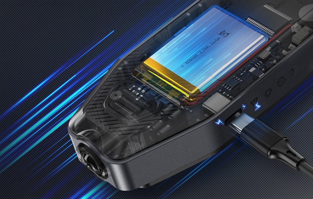Kompakt kialakítás, hosszú üzemidő A CTG-20 mérőműszert könnyű kialakítása (mindössze 115 mm hosszú) és az egykezes kezelést lehetővé tevő ergonomikus fogantyú jellemzi. A beépített 600 mAh lítium akkumulátor USB-C csatlakozón keresztül töltve akár 8 órás üzemidőt biztosít egyetlen feltöltéssel. Az automatikus kikapcsolási funkció 5 perc inaktivitás után meghosszabbítja az akkumulátor élettartamát és energiát takarít meg.