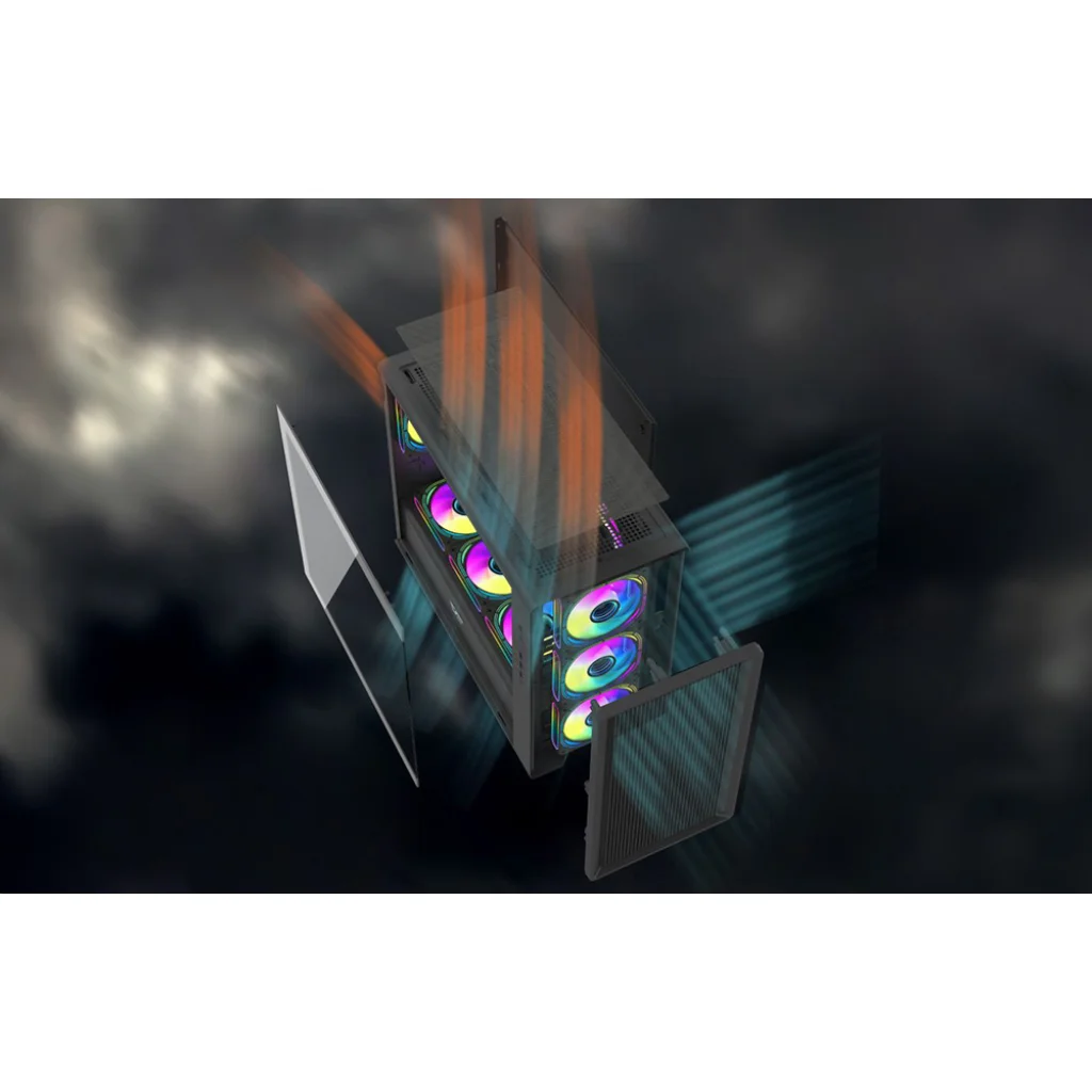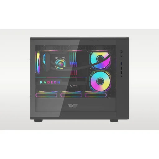 A Darkflash DB460M egy megbízható számítógépház, amelyet minden olyan játékosnak terveztek, aki a funkcionalitás és az esztétika kombinációját keresi. Tágas belső teret kínál a legfeljebb 420 mm hosszú grafikus kártyák kényelmes beszereléséhez, edzett üveg oldallapot, teljes hálós előlapot és kiváló hűtési lehetőségeket (akár 12 ventilátor és egy 360 mm-es radiátor is beszerelhető). A ház elegáns megjelenésű, M-ATX és ITX alaplapokkal kompatibilis, és a gyors adatátvitel érdekében USB 3.0 portokkal van felszerelve.
