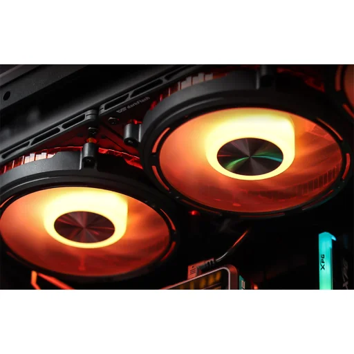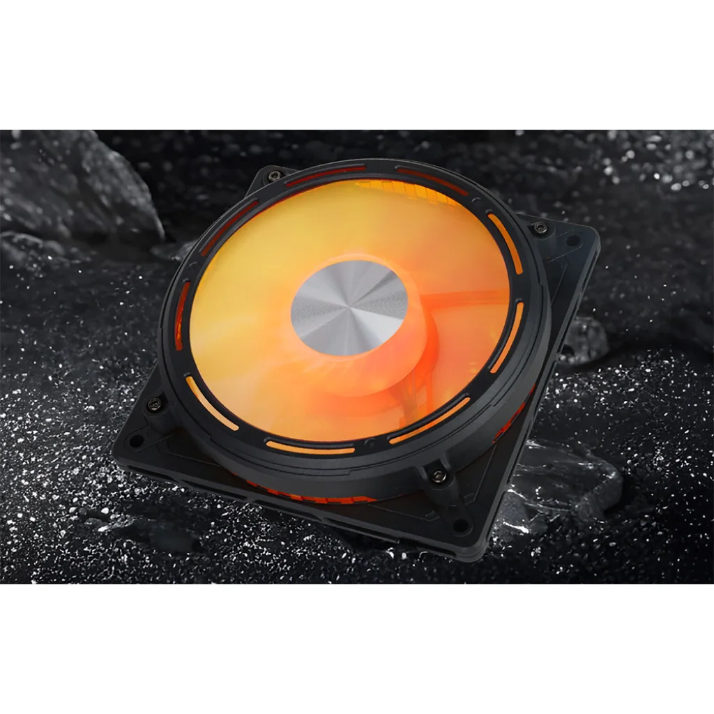 A ventilátor elülső részét CD Spindle felület borítja - ezek lézergravírozott körök, amelyek működés közben örvényhatást keltenek. Ez különösen a dinamikus ARGB háttérvilágítással szemben mutat feltűnően, amely a rendszer többi részével teljes szinkronban képes működni.