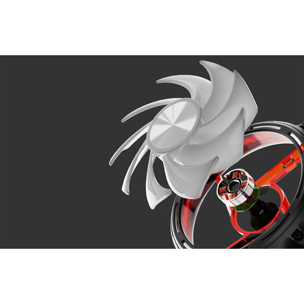 A ventilátor 9 speciálisan kontúrozott lapátot használ, amelyeket az optimális légáramlás és a csendesebb működés érdekében terveztek. Ez a kialakítás javítja a hűtés hatékonyságát, miközben alacsonyan tartja a zajszintet.