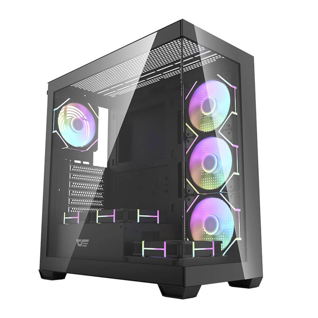 A Darkflash DS900 egy modern megoldás az igényes felhasználók számára, akik értékelik az esztétikát és a funkcionalitást. A jellegzetes fekete dizájn, panoráma kialakítással, A-oszlop nélkül, kettős teljesen átlátszó üvegfallal nemcsak feltűnő megjelenést nyújt, hanem kiváló rálátást biztosít a komponensekre is. A ház optimális hűtést, teljesítményt és sokoldalúságot biztosít, miközben könnyűvé teszi a számítógépes rendszerek módosítását és bővítését. A készletben 7 ARGB 120 mm-es ventilátort talál.