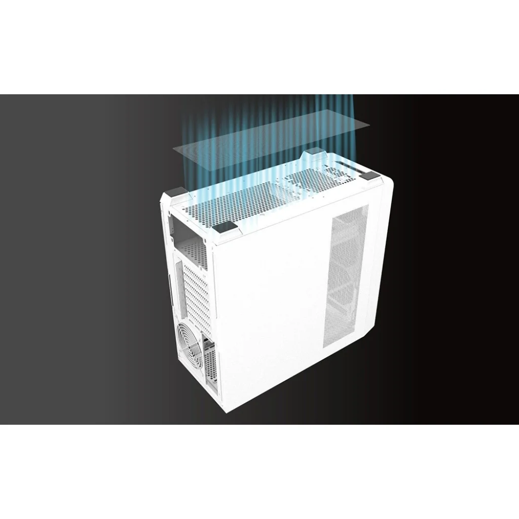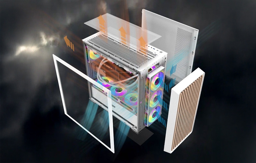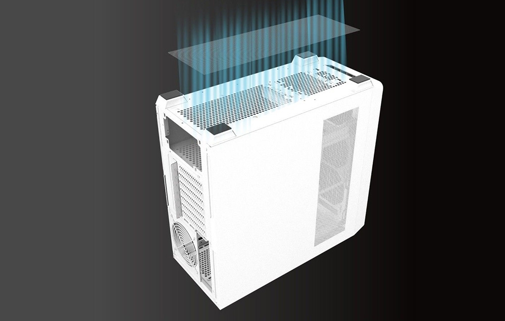A ház jobb oldalán egy fémháló található, amely nemcsak megfelelő szellőzést biztosít, hanem a nagyobb porszemcséket is megakadályozza a házba jutásban. Mi több, a felső és alsó hálós panelek is védik a berendezéseket a törmeléktől, mágneses kialakításuknak köszönhetően pedig könnyen felszerelhetőek és eltávolíthatóak.