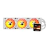 A készlet három 120 mm-es hidraulikus csapágyazású (HDB) ventilátort használ, amelyek nagy légnyomást (akár 2,16 mmH₂O) és robusztus áramlást (akár 55,22 CFM) biztosítanak, mindössze 36 dBA maximális zajszint mellett. A PWM-támogatás lehetővé teszi a fordulatszám automatikus beállítását a CPU hőmérsékletének megfelelően. Az ARGB kompatibilis a legújabb háttérvilágítási rendszerekkel (ASUS Aura, MSI Mystic Light, Gigabyte RGB Fusion, ASRock Polychrome).