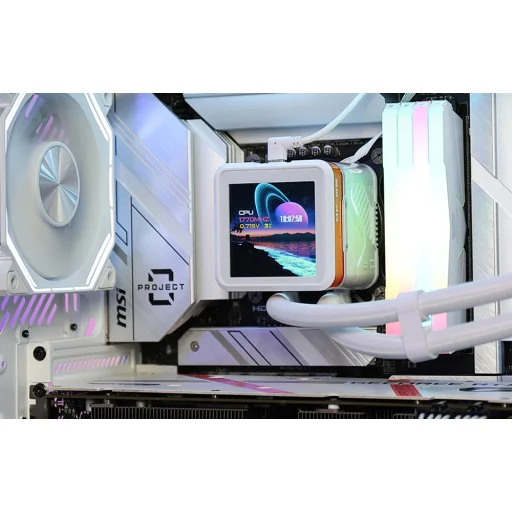 A vizesblokkba integrált 2,88 hüvelykes (480×480 px) IPS-képernyő segítségével valós időben nyomon követheti a CPU hőmérsékletét, a ventilátor sebességét, az órákat vagy az üzemmódokat. Mágneses rögzítésének köszönhetően levehető és máshová - például a ház elejére - is felszerelhető. A megjelenített információk testreszabása saját fejlesztésű szoftverrel történik, amely támogatja a témákat, az eszközök közötti szinkronizálást és az AR-vizualizációt.