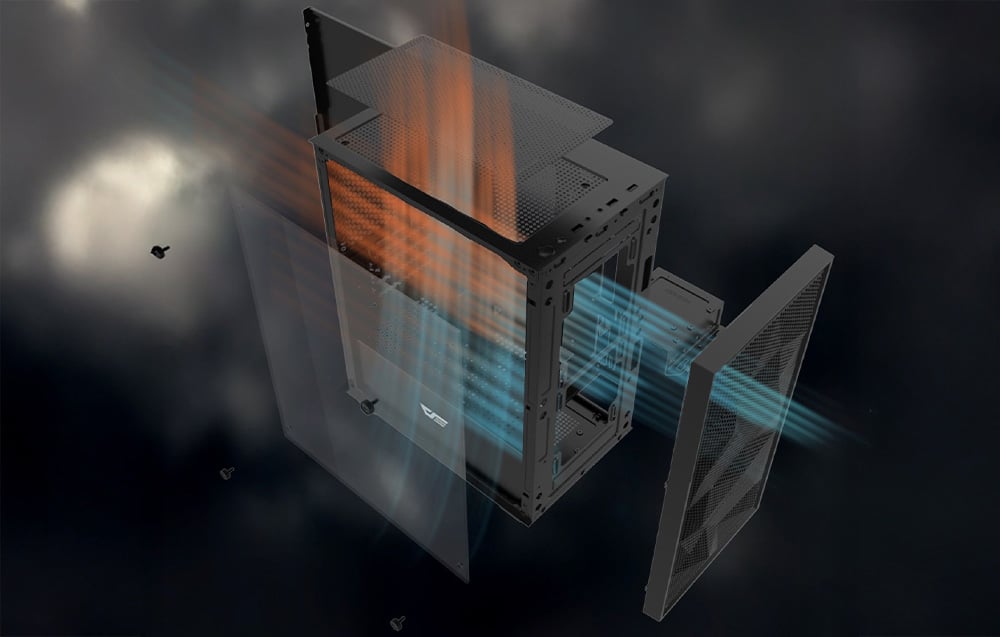 A Darkflash M305 Mesh azok számára jelent lehetőséget, akik értékelik a minimalista dizájnt, a funkcionalitást és a számítógép konfigurációjának szabadságát. Az előlap ipari stílusban készült, teljes hálós panellel, amely kiváló légáramlást biztosít a tokba.