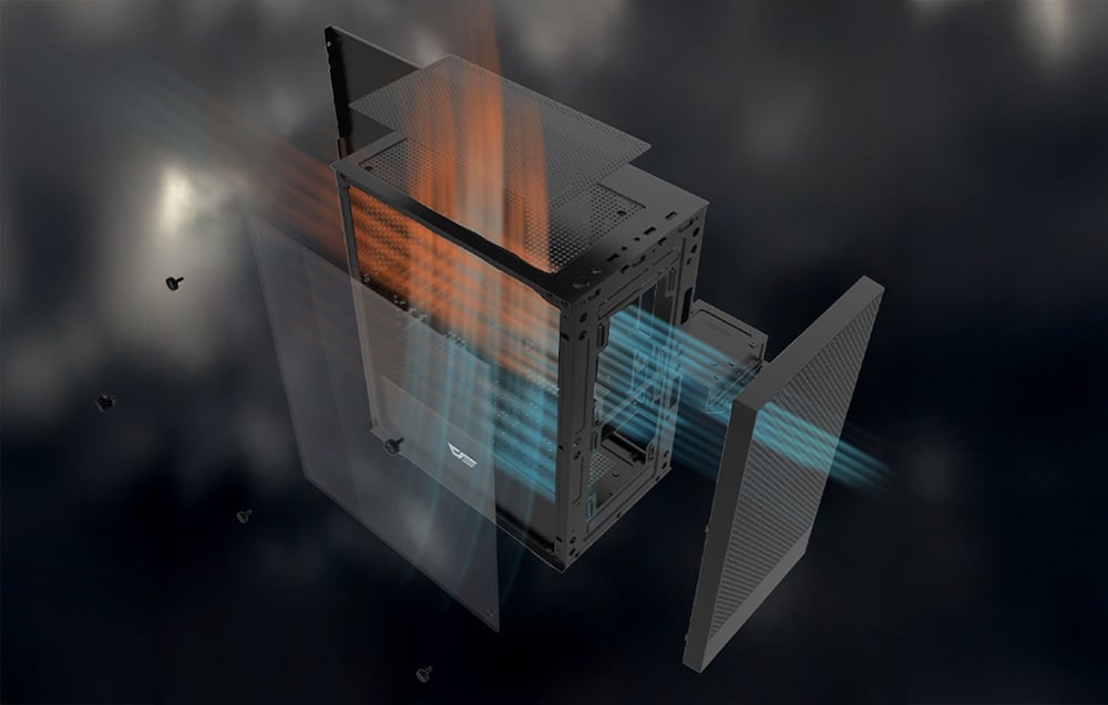 A Darkflash M305 nagy szabadságot kínál a hűtés megtervezésekor - akár 7 darab 120 mm-es ventilátor is elhelyezhető benne. Egy ilyen elrendezés lehetővé teszi, hogy nagyon hatékony léghűtési rendszert építsen ki, ami a processzor, a grafikus kártya és más komponensek stabil működését jelenti, még intenzív játék vagy grafikus programokkal való munka közben is. A ventilátorok elrendezése testre szabható, így biztosítható az egyenletes légáramlás az egész házban.