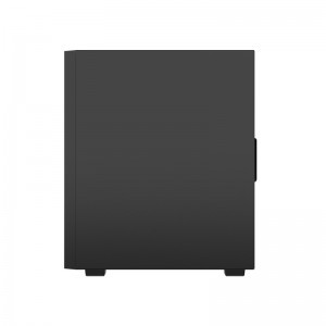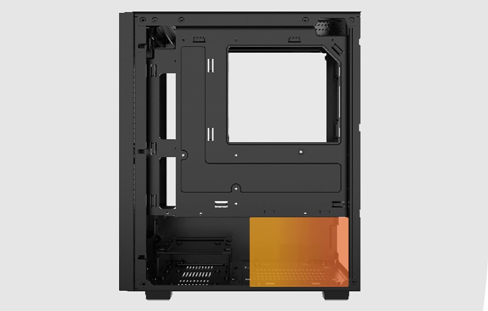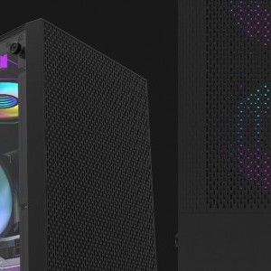 A ház edzett üvegből készült oldalsó panellel van ellátva, amelyet kényelmes hüvelykujjas csavarokkal rögzítünk. Így gyorsan és egyszerűen hozzáférhet a számítógép belsejéhez, anélkül, hogy szerszámokért kellene nyúlnia. Ez a megoldás nagyszerűen működik mind a hardverfrissítésekhez, mind a hűtőrendszer rendszeres tisztításához. A ház előlapja modern, áttört, szellőzőnyílásokkal ellátott panellel rendelkezik, amely nemcsak dinamikus jelleget kölcsönöz az egész háznak, de ami a legfontosabb, segíti a levegő keringését, megvédve az alkatrészeket a túlmelegedéstől.