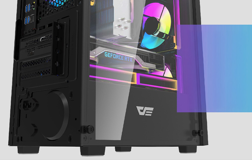 A Darkflash M305 egy aprólékosan megtervezett Micro-ATX számítógépház, amely a kompakt méreteket a funkcionalitással és a futurisztikus dizájnnal ötvözi. Olyan felhasználók számára készült, akik jó ár-érték arányt keresnek, anélkül, hogy kompromisszumot kötnének a légáramlás, a hardverkompatibilitás és az esztétika terén. Az edzett üvegből készült átlátszó oldalsó panel lehetővé teszi az alkatrészek hatékony megjelenítését, amit biztosan értékelni fognak az RGB háttérvilágítás (piros, zöld és kék) vagy az elegáns készletek rajongói. Mostantól a játéktered stílusosan és elegánsan fog kinézni!