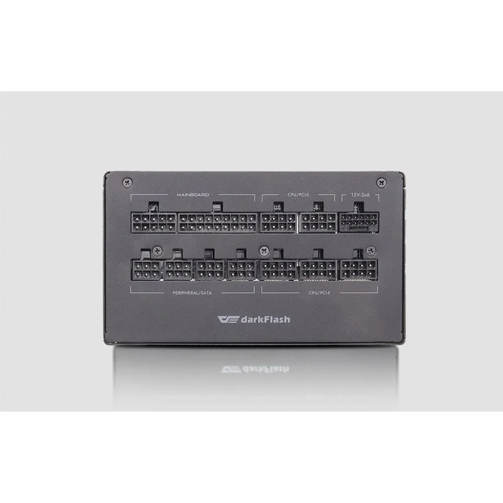 A DarkFlash PMT1250 számítógépes tápegység egy modern, 1250 W-os egység, amelyet az ATX 3.1 és PCIe 5.1 szabványoknak megfelelően terveztek, nagy teljesítményű játékgépekhez és professzionális munkaállomásokhoz. Az egyetlen +12 V-os vonal kialakítás stabil áramellátást biztosít a legigényesebb alkatrészek számára, az alvó üzemmódban 0,5 W alatti energiafogyasztás pedig nagyobb energiahatékonyságot garantál. Ezenkívül a 80 PLUS Gold tanúsítás megerősíti a 93%-os magas energiahatékonyságot, a kompakt méretek pedig biztosítják a kompatibilitást a legtöbb számítógép-házzal. Az ATX 3.1 és PCIe 5.1 teljes kompatibilitásának köszönhetően tökéletes választás a modern alkatrészekhez. Az aktív PFC és kiváló minőségű alkatrészek használata javítja az energiahatékonyságot és stabil áramot biztosít, míg a csendes és intelligens hűtés kényelmes számítógép-használatot eredményez. A fejlett rendszervédelem védi a tápegységet és a számítógép alkatrészeit. A moduláris kábelezés és a kis méretek megkönnyítik a beszerelést és a belső elrendezést.