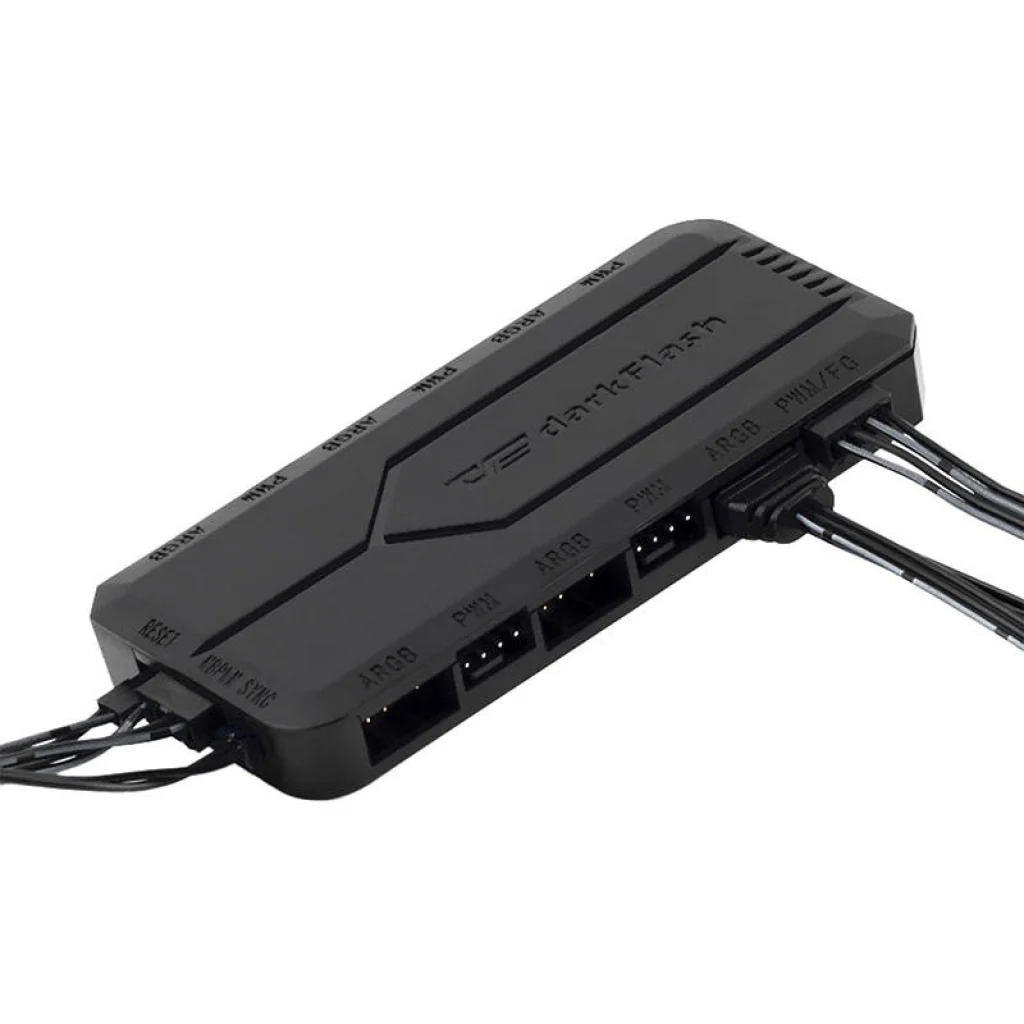 A Darkflash PWM vezérlő modul több ARGB és PWM porttal van felszerelve. Legfeljebb 14 világítási effektust támogat, és szinkronizálható az alaplappal. Lehetővé teszi a hőmérséklet és a ventilátor sebességének vezérlését. Felhasználóbarát és rendkívül tartós.