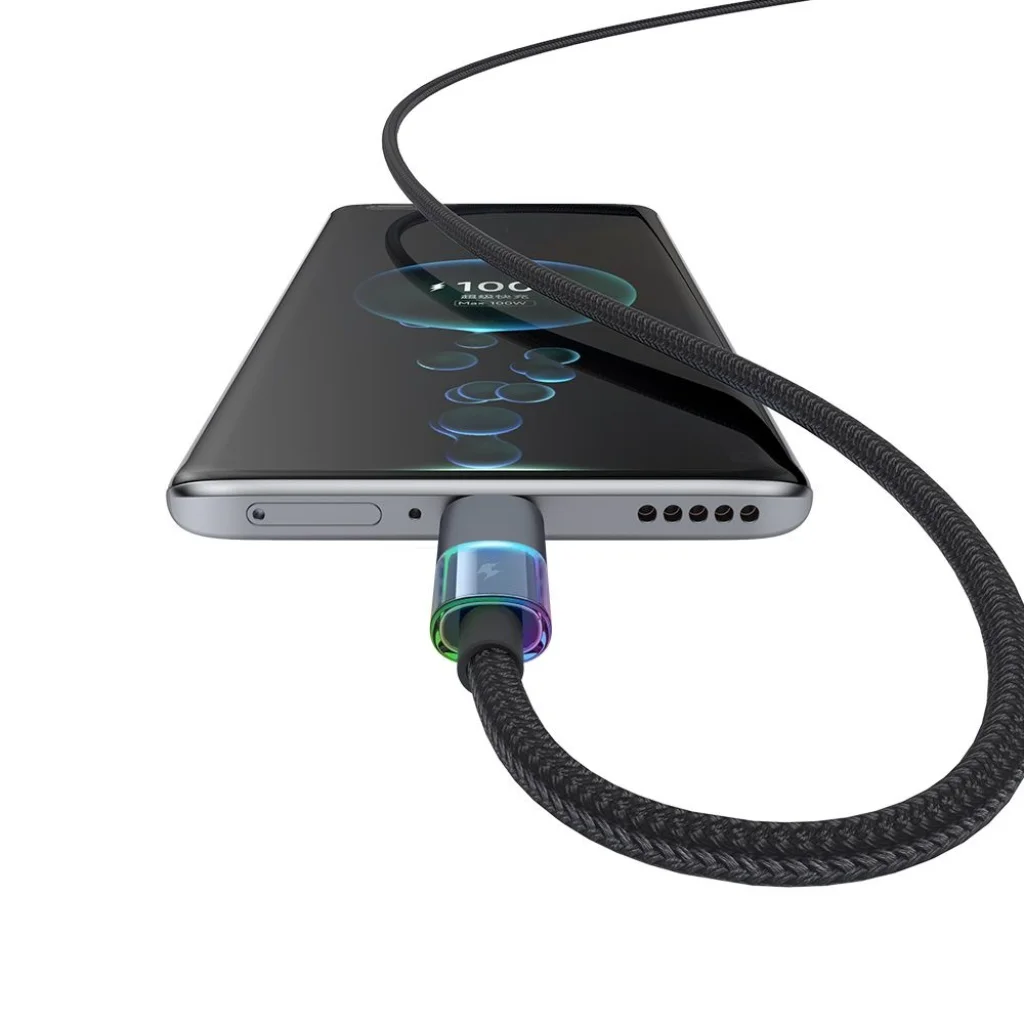Engedje, hogy a töltés egy vizuális utazássá váljon! A CA-8180 kábel egyedülálló, átlátszó csatlakozórésszel rendelkezik, amely töltés közben szekvenciálisan változó, 7 különböző színben világít. Ez a dinamikus RGB effekt nem csak gyönyörködtető, hanem egyedivé és modernné teszi az eszközt, kiemelve azt a hagyományos kábelek sorából.