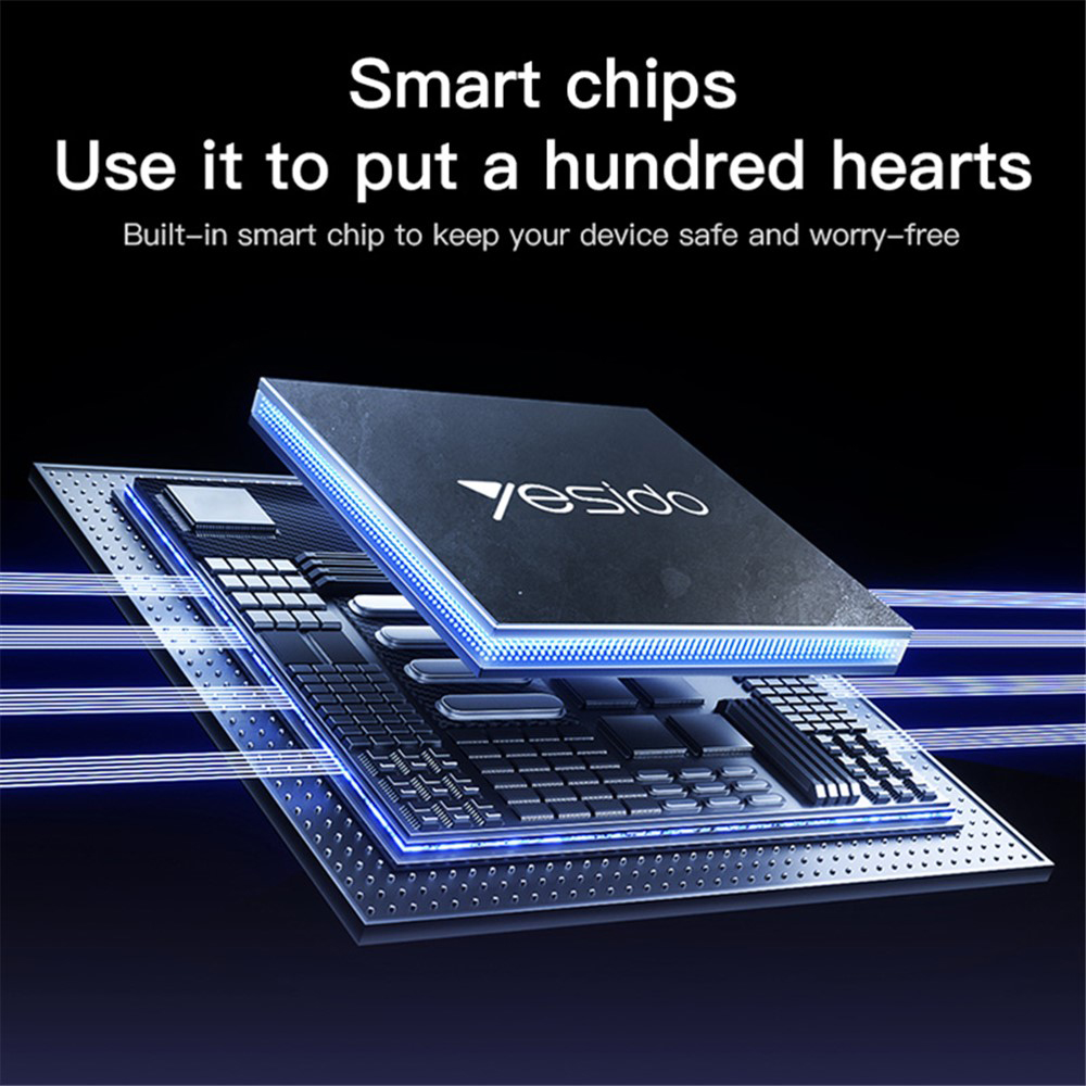 Aggódik készülékei biztonságáért töltés közben? A beépített intelligens chip garantálja a maximális védelmet azáltal, hogy megóvja eszközeit a túltöltéstől, a túlfeszültségtől és a túlmelegedéstől. Használja nyugodtan, tudva, hogy készülékei biztonságban vannak a Yesido adatkábel gondoskodó védelmével.