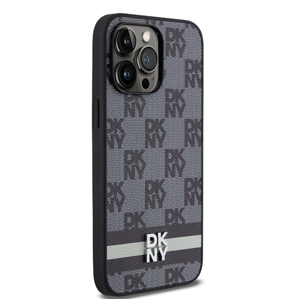 DCNY kemény fliptok bőrutánzat sakk mintás & nyomtatott csíkos DKHCP14XPCPTSSK iPhone 14 Pro Max fekete tok
