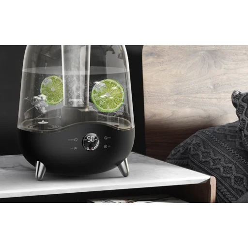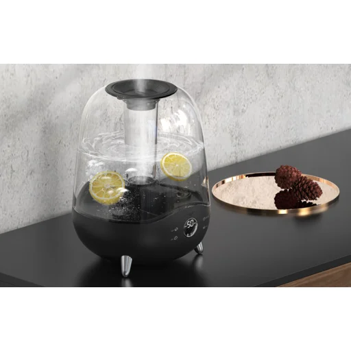 A párásító úgy lett kialakítva, hogy ne alakulhasson ki szivárgás vagy esetleges mechanikai probléma. Az ovális alakú készülék az átlátszó tartályával és a fekete alsó részével bármilyen szobának stílusos kiegészítője lehet. A párásító kijelzőjén ellenőrizheti az aktuális páratartalmat, a víztartályt pedig különböző dekorációk hozzáadásával a saját ízlésére szabhatja.