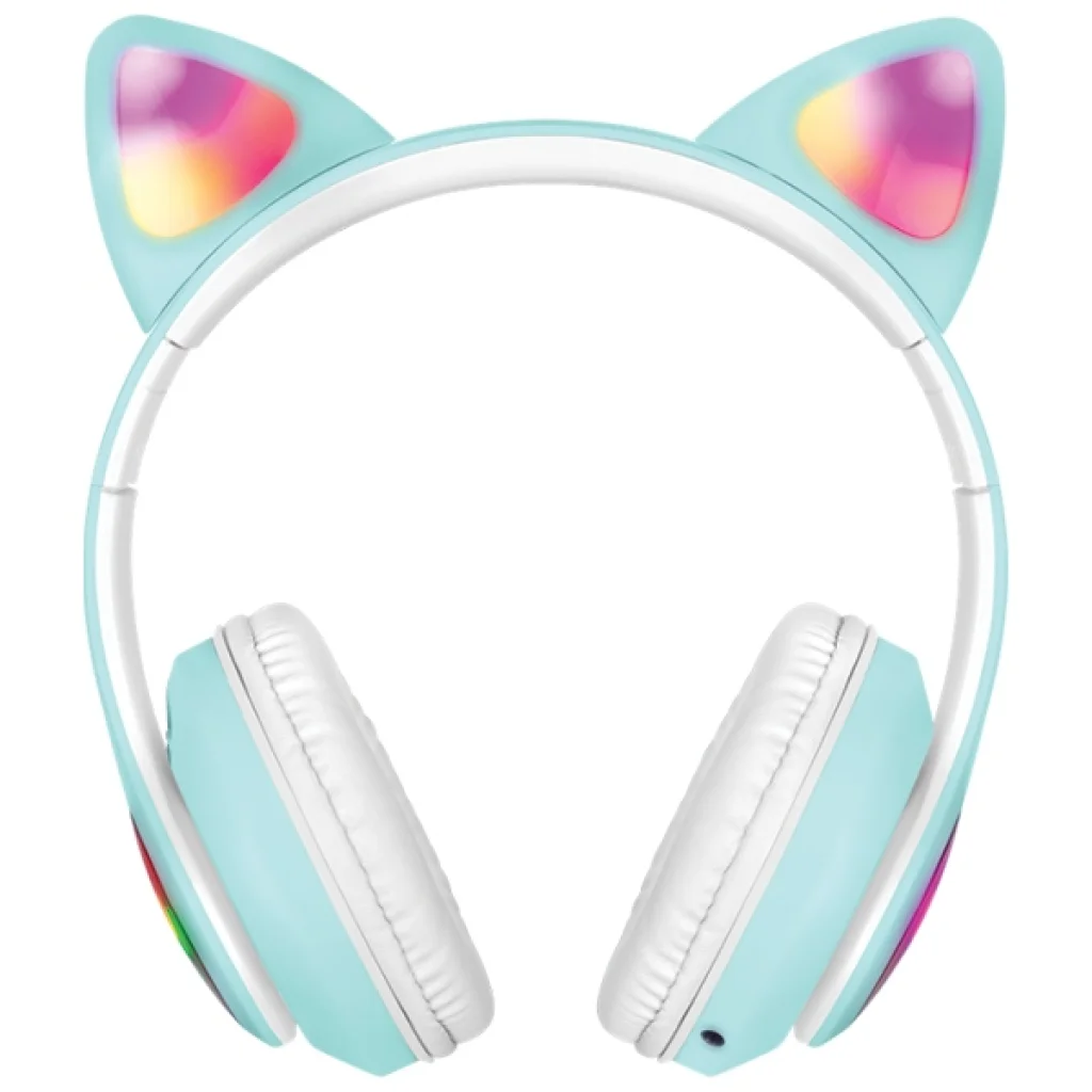 - Világító macskafülek és tappancs LED: A fülhallgatók tetején található aranyos, színesen világító macskafülek, valamint az oldalsó, pulzáló LED tappancs minta teszi igazán egyedivé ezt a modellt. Ezek a fények ritmusra váltakoznak, vagy fixen világítanak, azonnal feltűnővé téve viselőjét. A vidám zöldeskék szín elegáns megjelenést kölcsönöz.