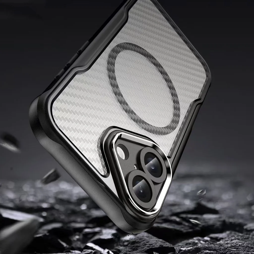 A Defender Carbon Mag borítás megbízható védelmet nyújt a telefon számára, ötvözve a tartósságot a modern dizájnnal, teljes körű biztonságot kínálva a felhasználók eszközei számára. Rugalmas TPU-ból és tartós PC-ből készült, hatékonyan védi a telefont az ütések, sokkok és karcolások ellen, miközben vékony profilt tart meg, mindössze 2 mm vastagsággal.