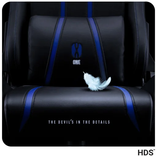 Strapabíró konstrukciója acélvázzal stabilitást és hosszú élettartamot biztosít. Az ülés és a háttámla puha, rugalmas HR habbal van kitöltve, amely sok óra ülés után is megőrzi alakját. Az üléskárpit kiváló minőségű HDS™ öko-bőr, modern fekete színvilágban kék díszítésekkel, amely ellenálló a kopással szemben és könnyen tisztítható.