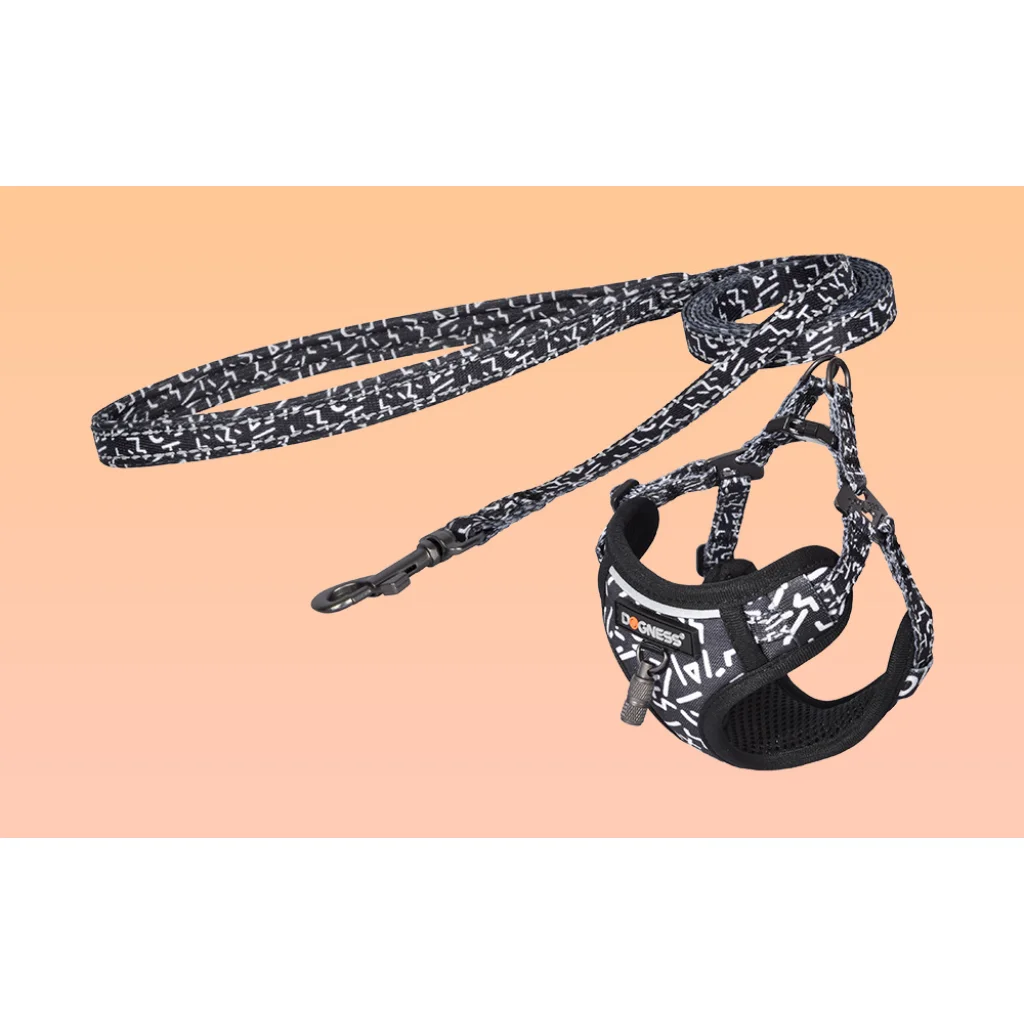 Dogness sétáló szett pórázzal és hámmal (fekete és fehér).