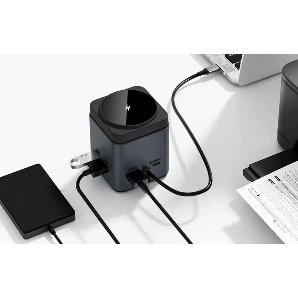 A BlitzWolf BW-TH17 egy fejlett dokkolóállomás, amely sokoldalúságot és kényelmet biztosít. USB 3.0 portokat, HDMI-t, SD/TF kártyahelyeket, RJ45 portot és egy akár 15 wattos teljesítményű Qi vezeték nélküli töltőt kínál. Segítségével könnyedén növelheti számítógépe képességeit! Emellett tartós alumínium háza és széles körű kompatibilitása is megkülönbözteti.