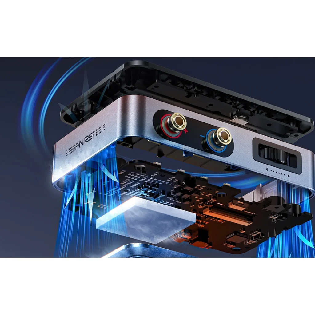 Hatékony hűtés és stabil működés: A tápegység kiváló minőségű hővezető szilíciumot használ, amely biztosítja a hatékony hőelvezetést. Az alumínium ház passzív hűtőbordaként működik, stabil teljesítményt biztosítva. Az FNIRSI DPS150 teljes körű biztonsági funkciókkal rendelkezik, például túlfeszültség, túlterhelés, rövidzárlat, túlmelegedés és a bemeneti és kimeneti feszültség megfordulása elleni védelmet kínál.