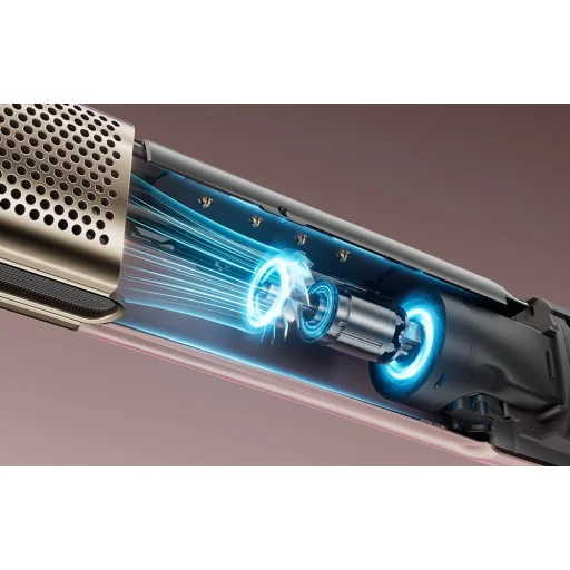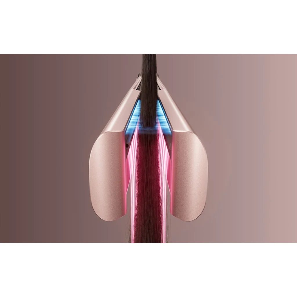 A beépített, 120 000 fordulat/perc lenyűgöző sebességű, kefe nélküli motor erős, stabil légáramot generál, amely felgyorsítja a szárítást és megkönnyíti a vastag, sűrű vagy hosszú haj formázását. Ez a professzionális fodrászati berendezésekből ismert megoldás mostantól kompakt, elegáns hajvasalóban is elérhető. Ennek a teljesítménynek köszönhetően a formázás kevesebb időt vesz igénybe, hatékonyabb és nem igényel sok ismétlést.