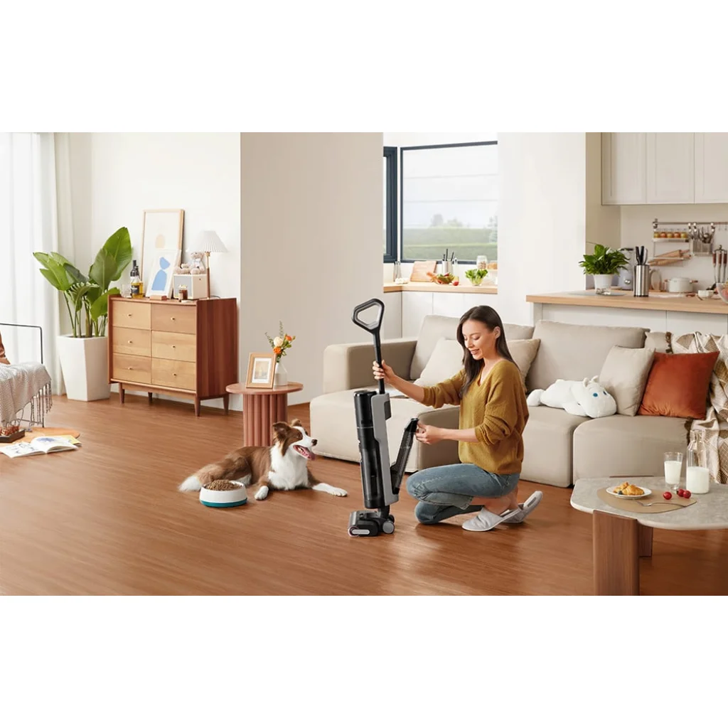 A Dreame G10 Pro a hatékony és kényelmes napi takarításhoz készült. A készülék egyesíti magában a nagy szívóerőt, a száraz és nedves szennyeződések egyidejű összegyűjtésének képességét és a csendes működést, amely nem zavarja a háztartás tagjait. A 900 ml-es tiszta víztartállyal és 35 perces csendes működést lehetővé tevő akkumulátorral a G10 Pro akár 200 m² nagyságú terület tisztítására is képes, gyakori újratöltés vagy újratöltés nélkül.