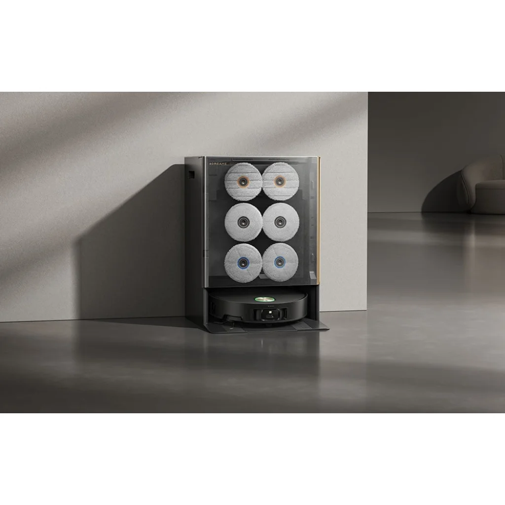 A rendszer középpontjában egy korszerű dokkolóállomás áll, amely akár három pár különböző tulajdonságú felmosórongyot is befogad. A robot önállóan felismeri a helyiség típusát, és automatikusan beállítja a megfelelő tisztítóhegyet. Más felmosórongyot használ a nappaliban, mást a konyhában és mást a fürdőszobában - mindezt a lehető leghatékonyabb és leghigiénikusabb takarítás érdekében. Ennek eredményeként nem kell többé kézzel cserélni a tartozékokat, mivel a Matrix10 Ultra ezt a tevékenységet teljesen magától végzi. Ezáltal a takarítás kényelmes és gyors lesz.