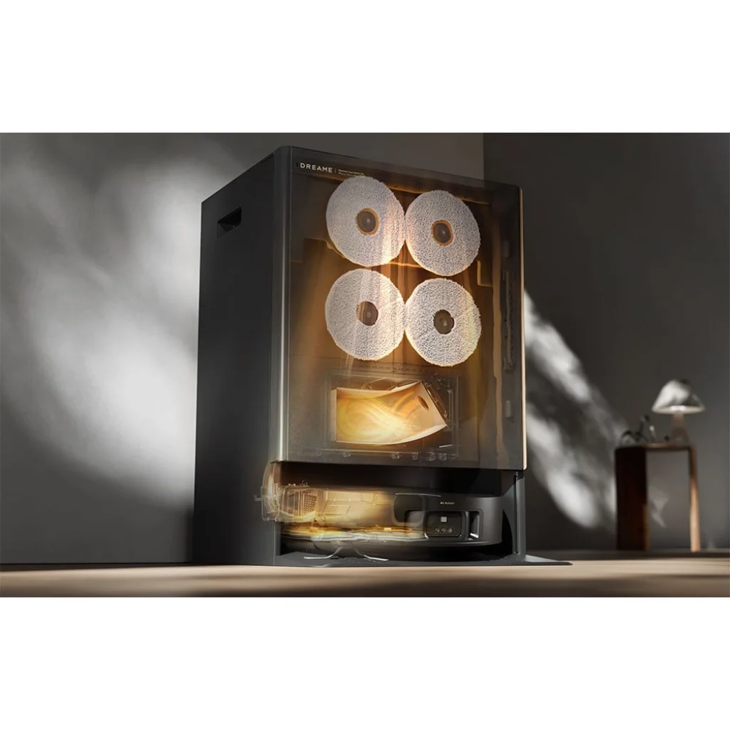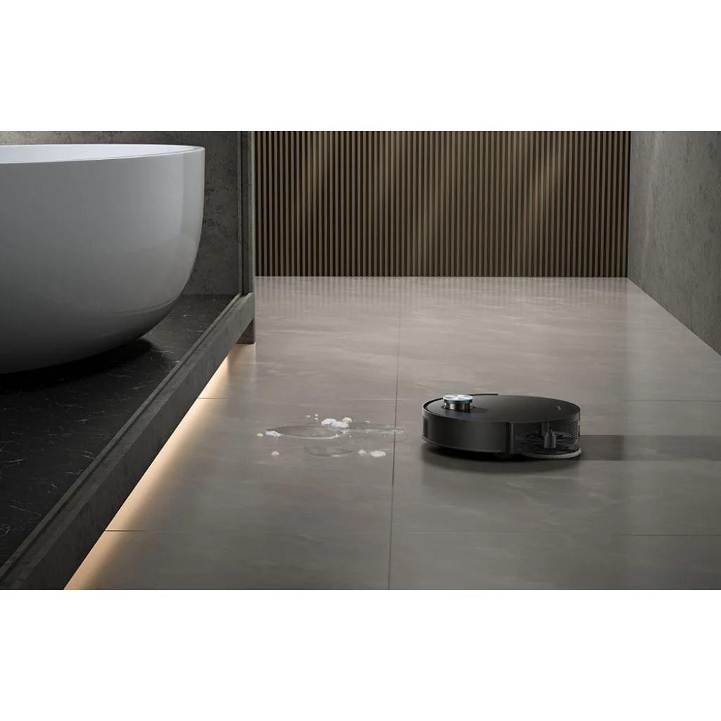 A kivételes felmosási hatékonyságot a termikus felmosópárnák biztosítják, amelyek a fázisváltó anyagok használatának köszönhetően állandó, 40°C feletti hőmérsékletet tartanak fenn. A forró felület nemcsak a kemény szennyeződések könnyebb eltávolítását teszi lehetővé, hanem a nedves helyiségekben a baktériumok elszaporodását is csökkenti. A nejlon sörtékkel ellátott párnák még a konyhapadlón lévő zsíros, beszáradt foltokkal is megbirkóznak, miközben kíméletesek maradnak a felülethez. A fürdőszobában viszont egy nedvszívó, beépített szivacsréteggel ellátott felmosórongy működik a legjobban. Feladata, hogy gyorsan felszívja a felesleges vizet, megakadályozza a baktériumok elszaporodását, és tökéletesen tisztán és szárazon tartja a padlót. Egy szagtalanító szerrel kombinálva a robot hatékonyan semlegesíti a kellemetlen szagokat, és biztosítja a frissességet az egész lakásban.