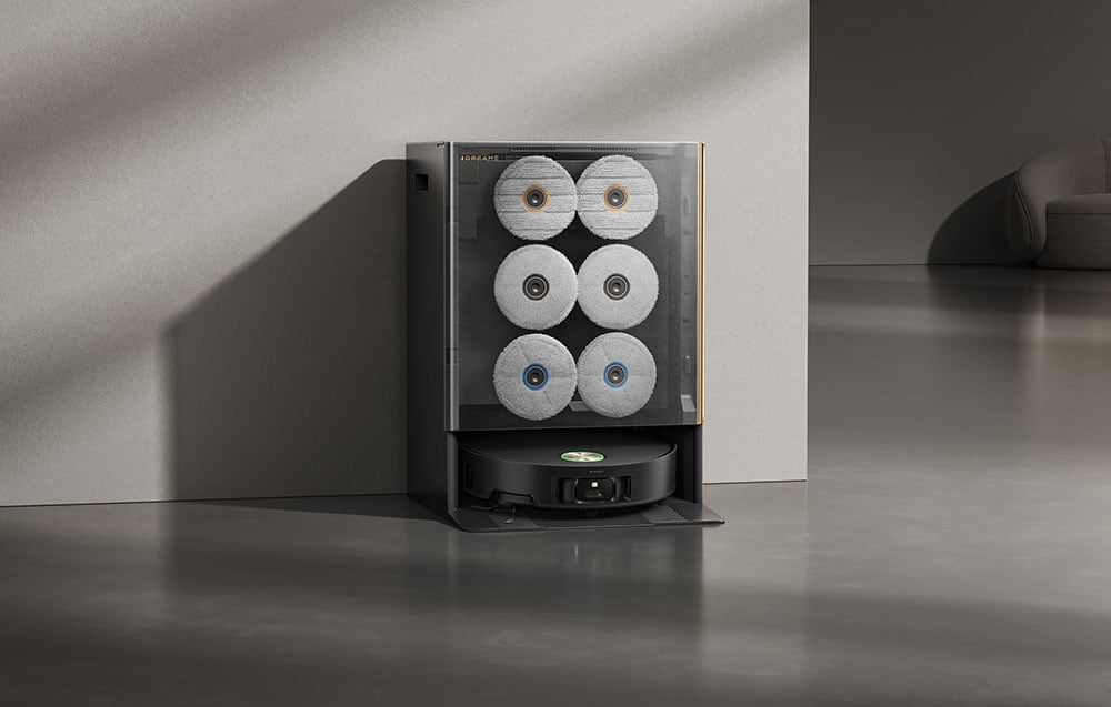 A Dreame Matrix10 Ultra egyedülálló Omni-Scrub párnákkal van felszerelve, amelyek automatikusan beállítják a dőlésszöget, hogy még jobban tapadjon a padlóhoz. Így a robot könnyedén megbirkózik az egyenetlen felületekkel, a durva csempékkel vagy a feltűnően textúrás padlókkal. A 8N nyomás a 165 fordulat/perc sebességgel kombinálva biztosítja a friss és a megszáradt foltok hatékony eltávolítását. Ráadásul a felmosógép emelőrendszere lehetővé teszi, hogy simán áthaladjon a küszöbökön, és alkalmazkodjon a padló szintkülönbségeihez.