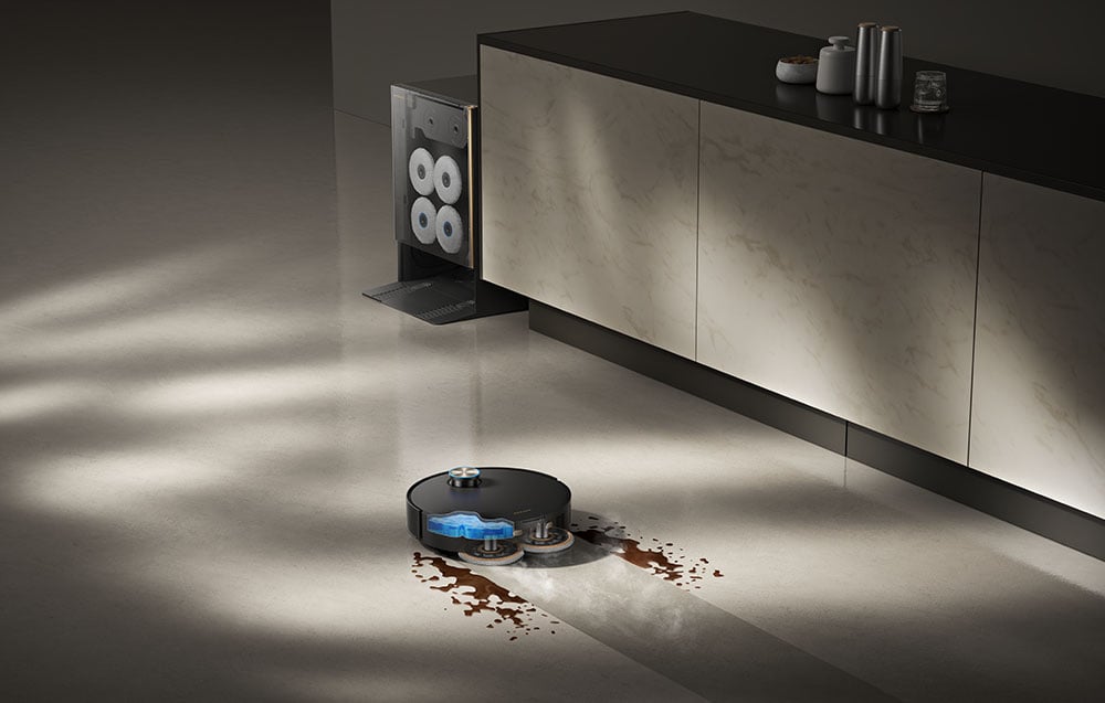 A robot a forradalmi VersaLift rendszerrel van felszerelve, amely automatikus, kihúzható és behúzható DToF érzékelővel rendelkezik. Tágas helyiségekben felemeli az érzékelőt, hogy 360°-ban teljesen átvizsgálja a környezetét, és azonnal megtervezze a takarítási útvonalát. Amikor azonban alacsony kanapék vagy ágyak alá kerül, a mechanizmus azonnal visszahúzódik, így a készülék magassága mindössze 89 mm-re csökken. Ilyen körülmények között a robotot további LED-ekkel ellátott AI-kamerák támogatják, amelyek lehetővé teszik, hogy 3D-s képet alkosson a környezetéről, és szabadon mozogjon ott, ahol más eszközök egyszerűen megállnak.