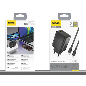 A Dudao A29C 65W GaN Töltőadapter + USB-C Kábel egy forradalmi töltési megoldás, amely a legmodernebb GaN technológiával biztosít kiemelkedő teljesítményt és hatékonyságot. Akár 65W maximális teljesítménnyel, valamint PD (Power Delivery) és QC (Quick Charge) gyorstöltési szabványok támogatásával pillanatok alatt feltöltheti okostelefonjait, táblagépeit és akár laptopjait is.